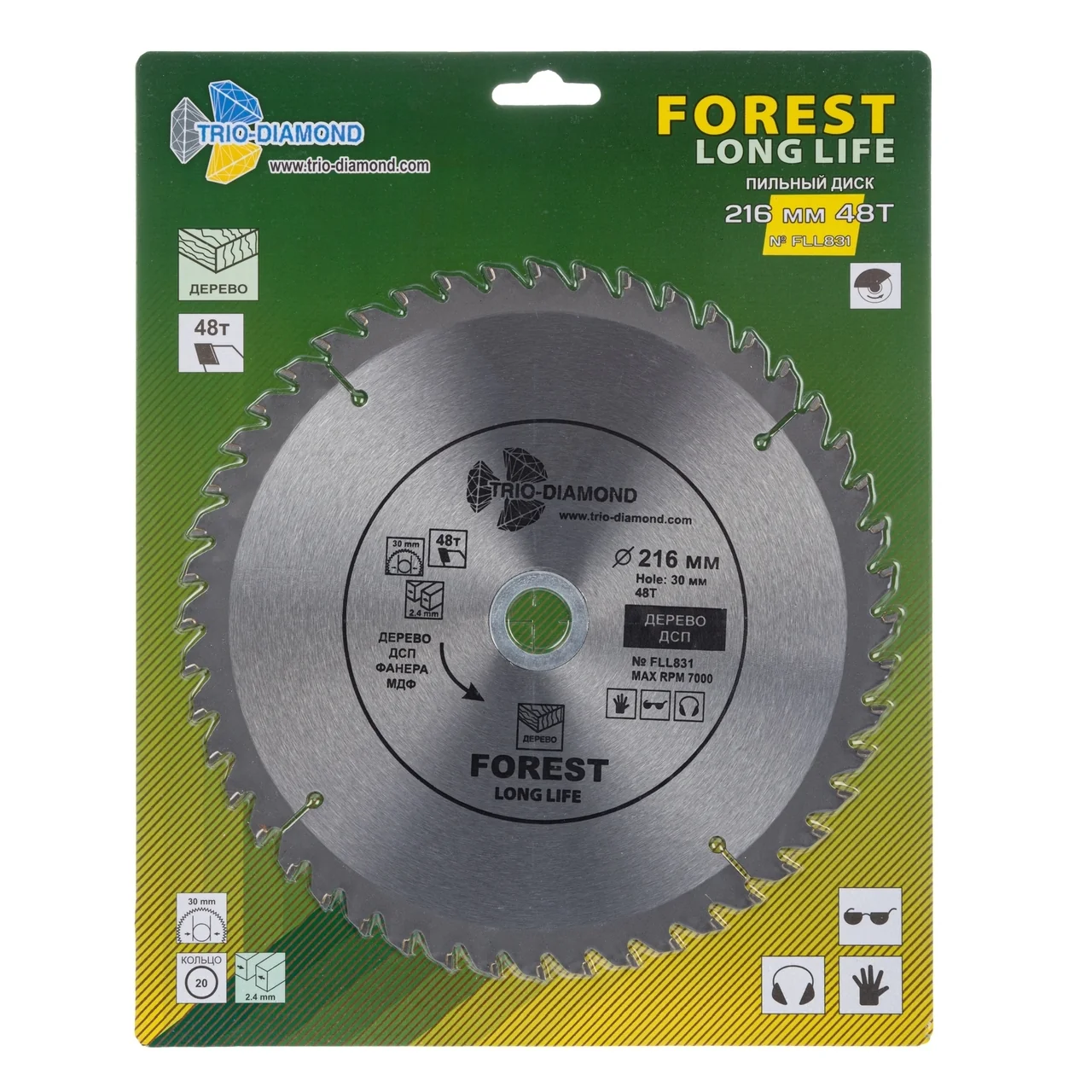 Серия Forest Long Life от TRIO-DIAMOND гарантирует долговечность и надежность инструмента. Максимальные обороты вращения 7000 RPM позволяют использовать диск на высоких скоростях без потери качества реза.