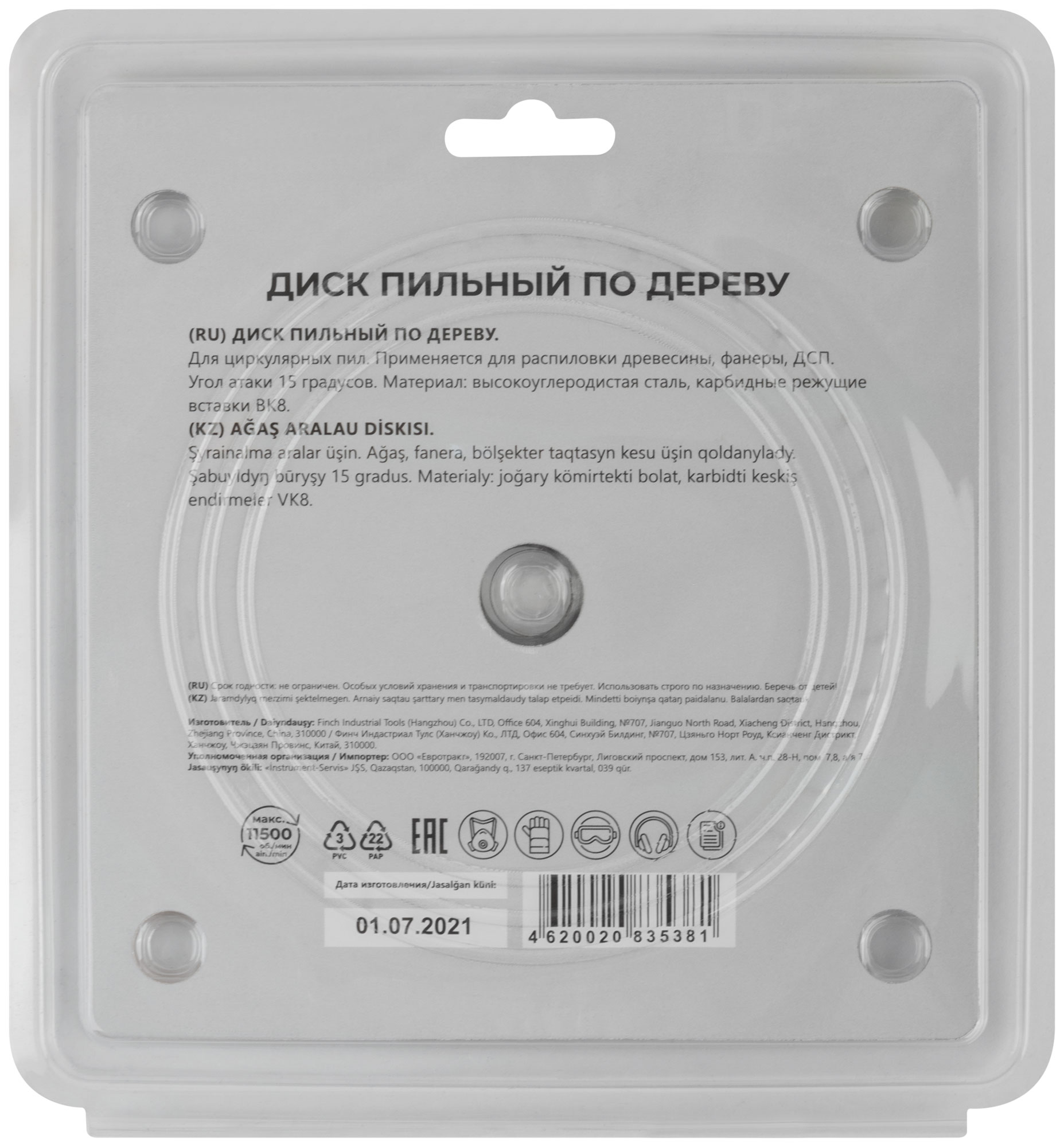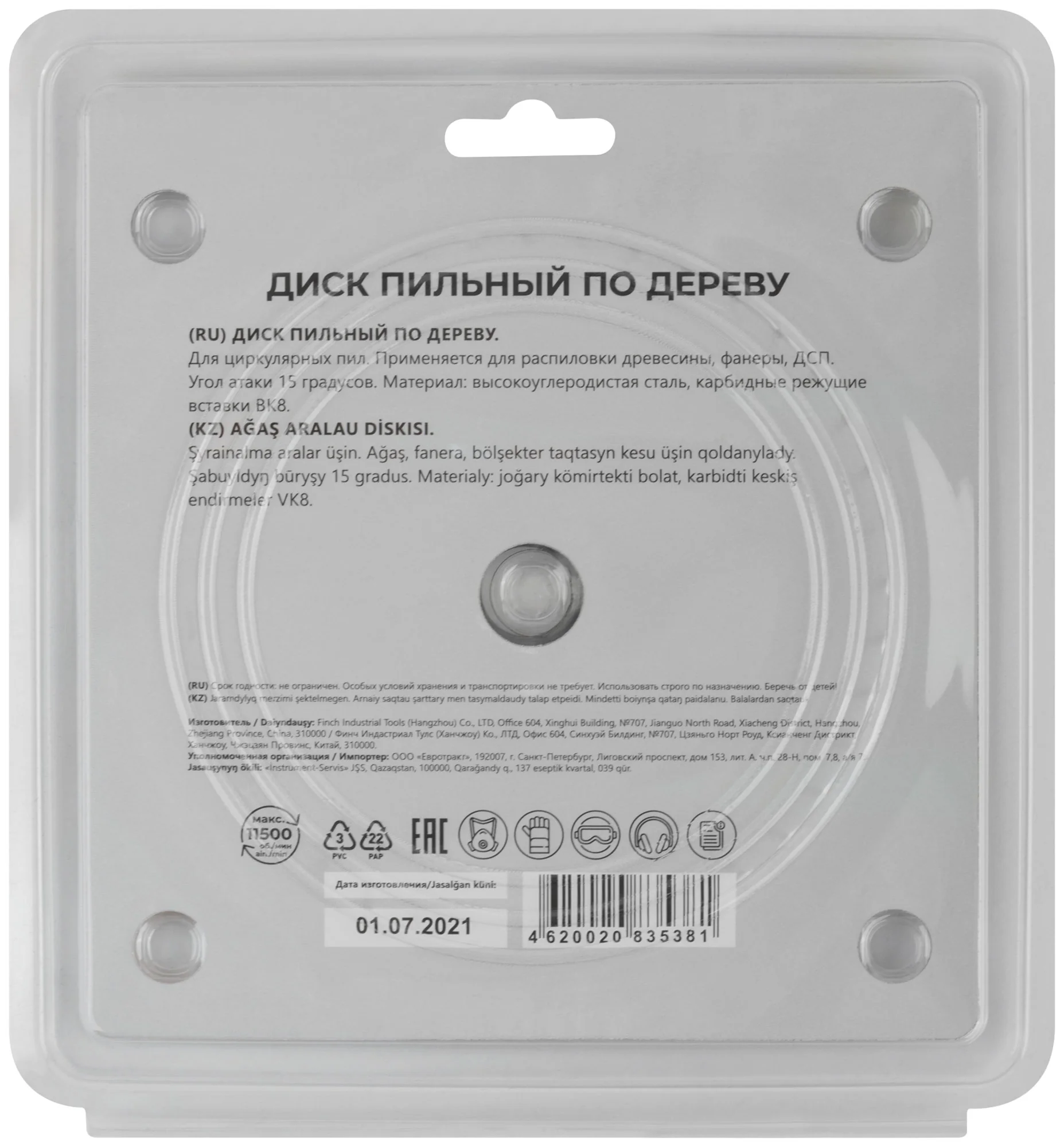 Корпус из легированной высокоуглеродистой стали и зубья из твердого сплава ВК8 (карбид вольфрама) обеспечивают надежную и долговечную эксплуатацию. Угол атаки +15° способствует более агрессивному и эффективному резу.