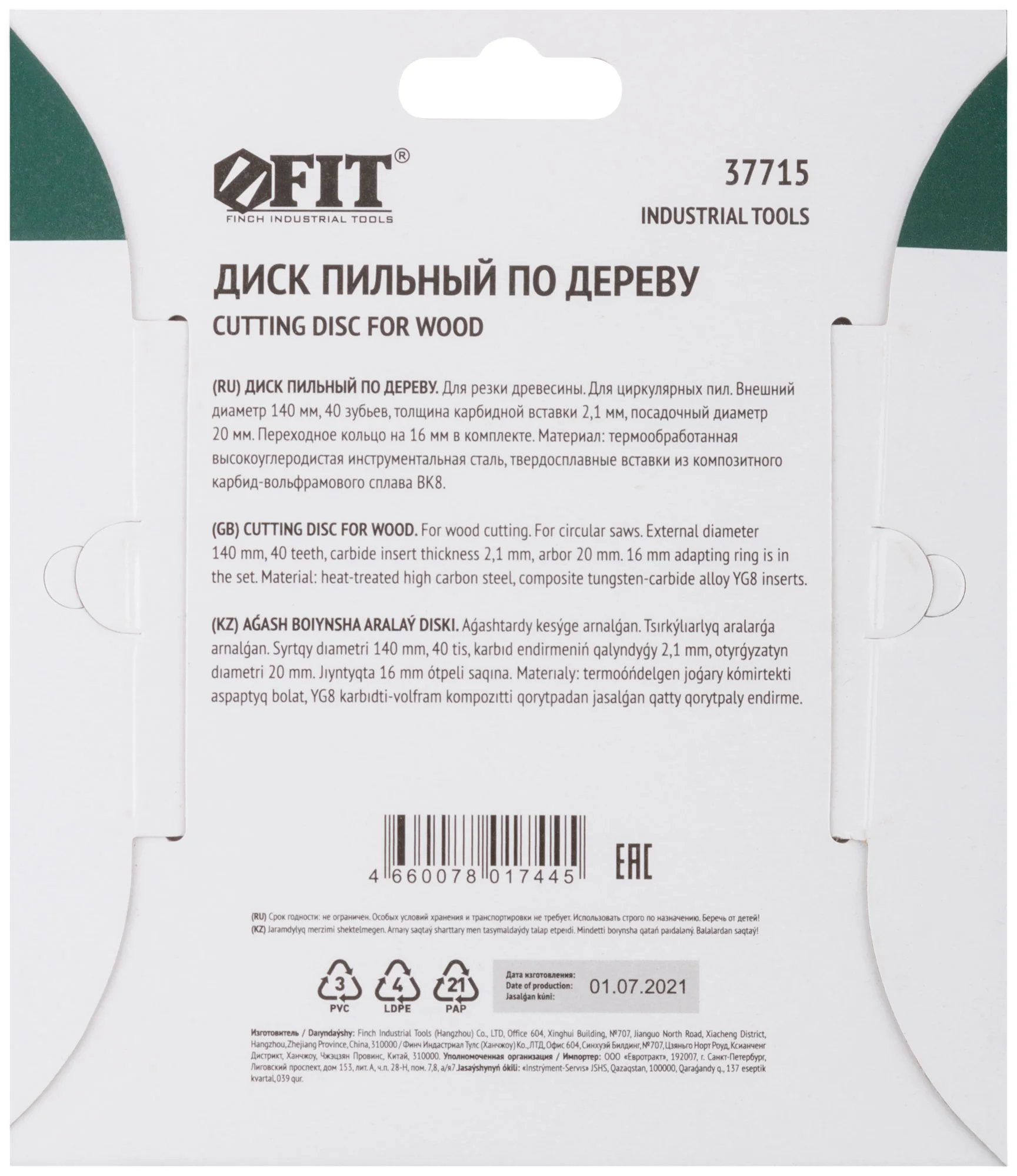 Выберите диск пильный FIT 37715, чтобы обеспечить себе надежный и эффективный инструмент для работы с деревом.