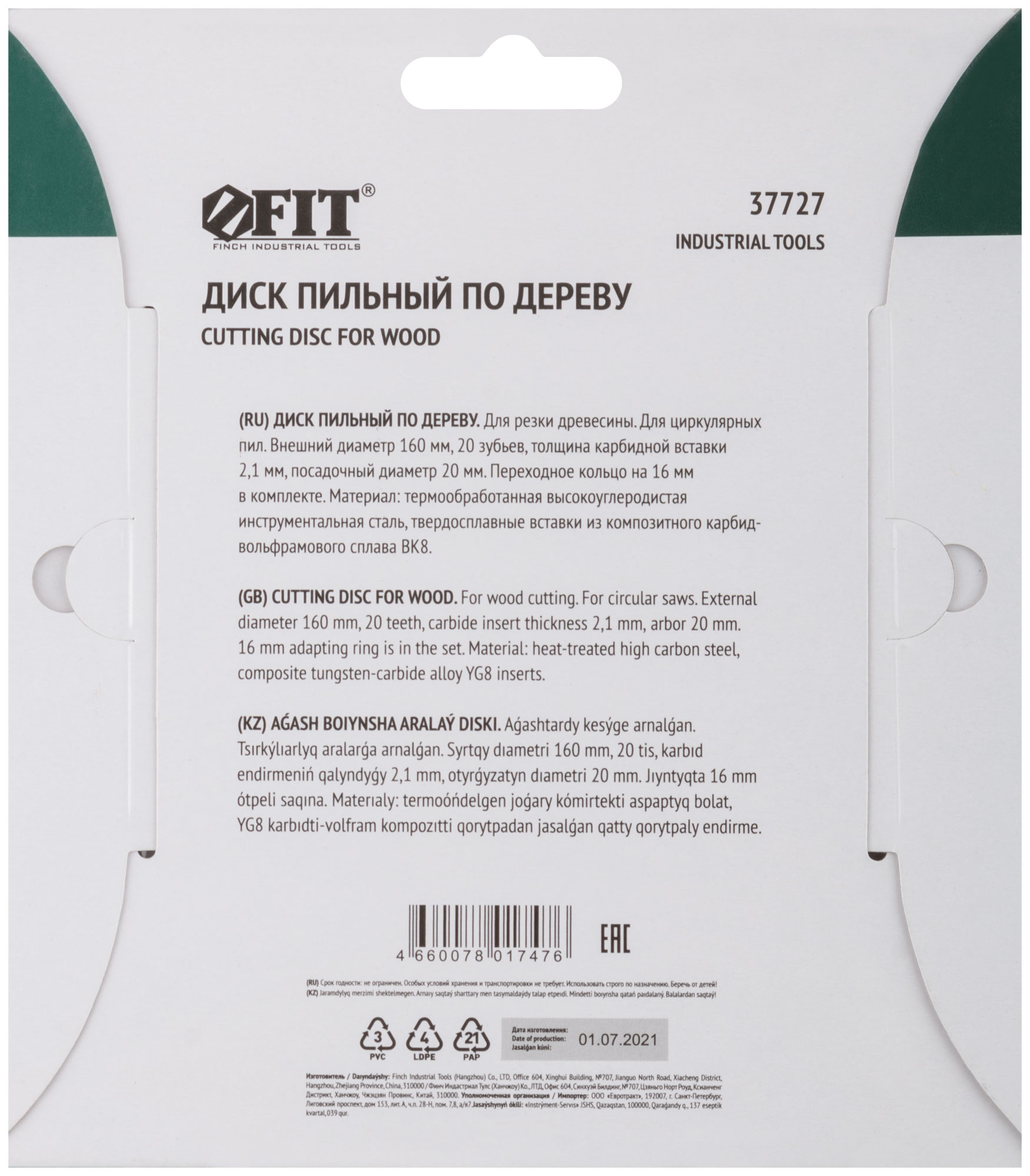 Выберите диск пильный FIT 160 х 20/16 х 20T, чтобы обеспечить себе комфорт и эффективность в работе с деревом.