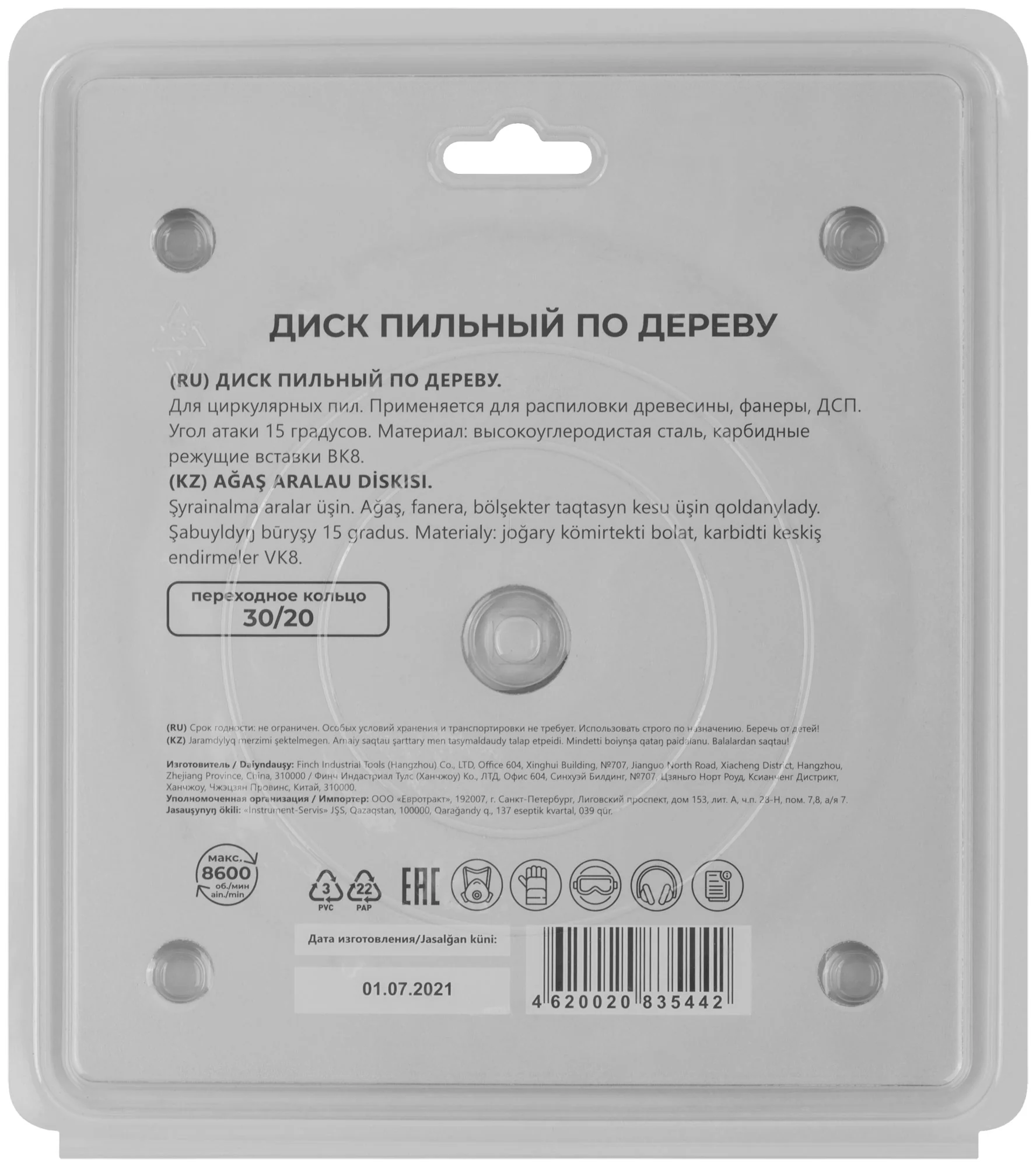 - Кольцо 30/20 мм — возможность установки на пилы с разным диаметром вала.