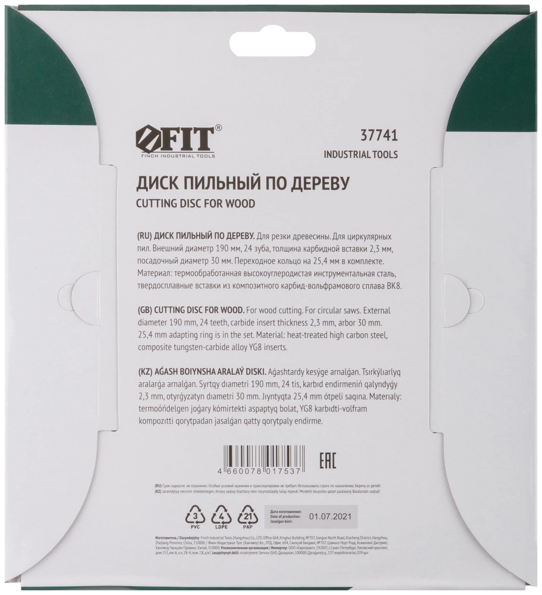 Выберите диск пильный FIT 37741, чтобы обеспечить себе надежный и качественный инструмент для работы с деревом.