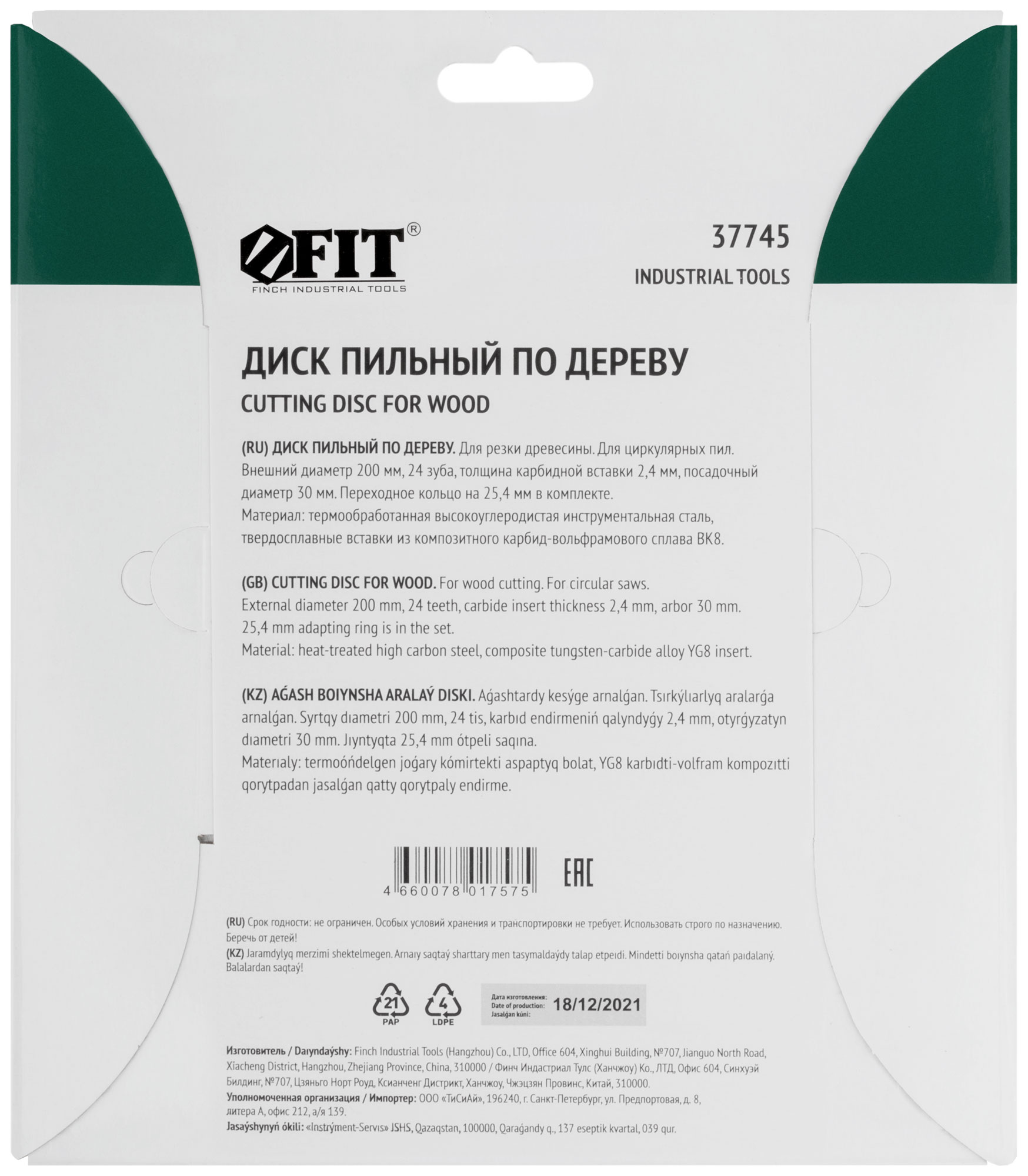 Выберите пильный диск FIT, артикул 37745, чтобы обеспечить качественный и аккуратный распил древесины в любых условиях.