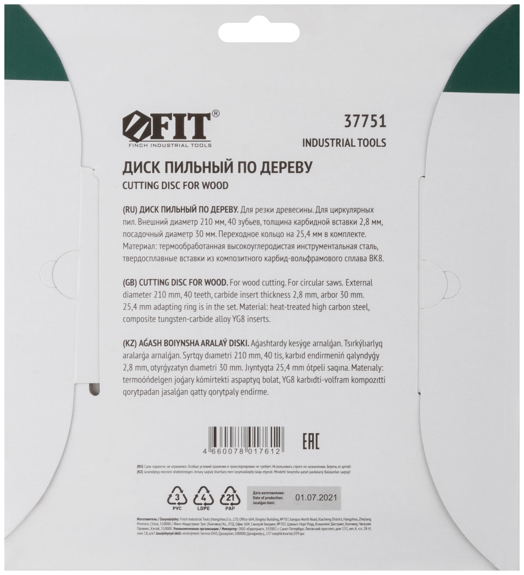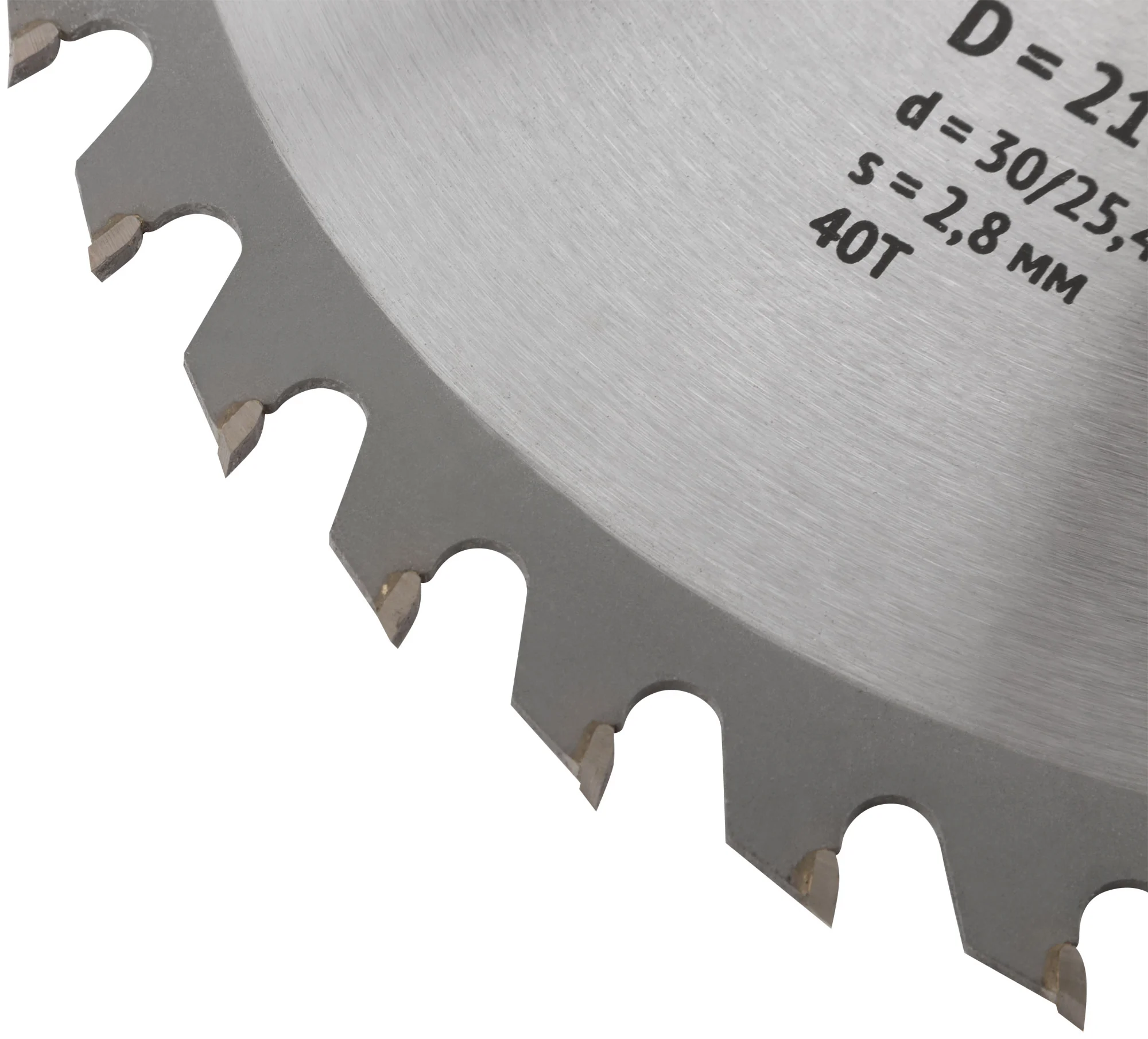 - Типоразмер 210 x 30/25,4 x 40T — подходит для большинства циркулярных пил.