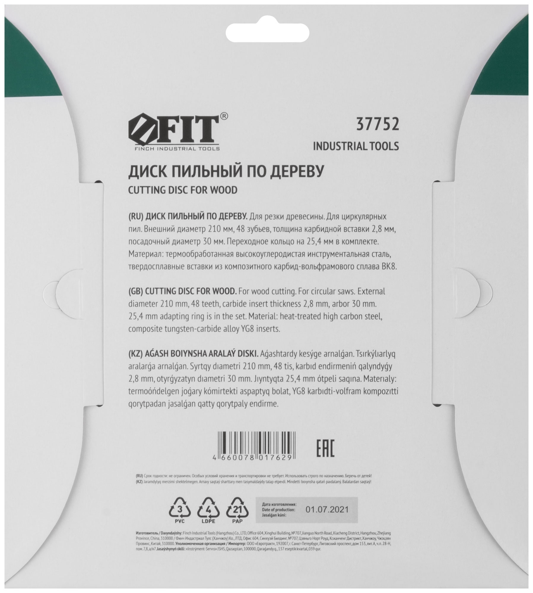 Выберите пильный диск FIT 37752, чтобы обеспечить себе надежный инструмент для качественного распила древесины.