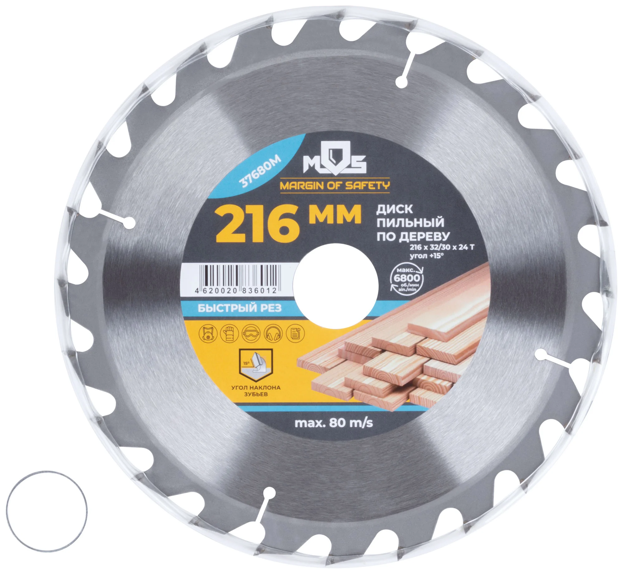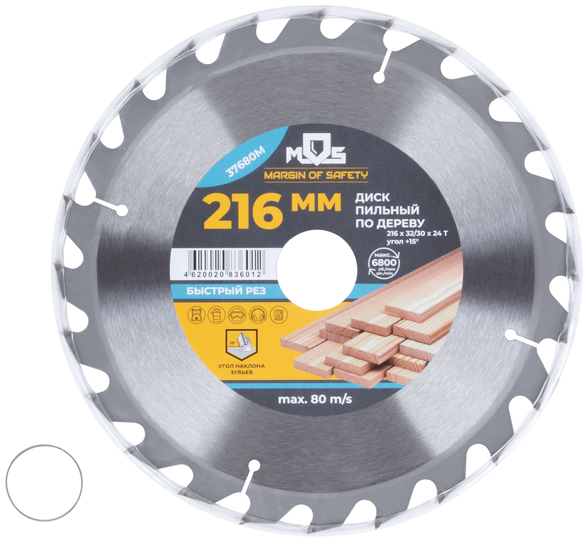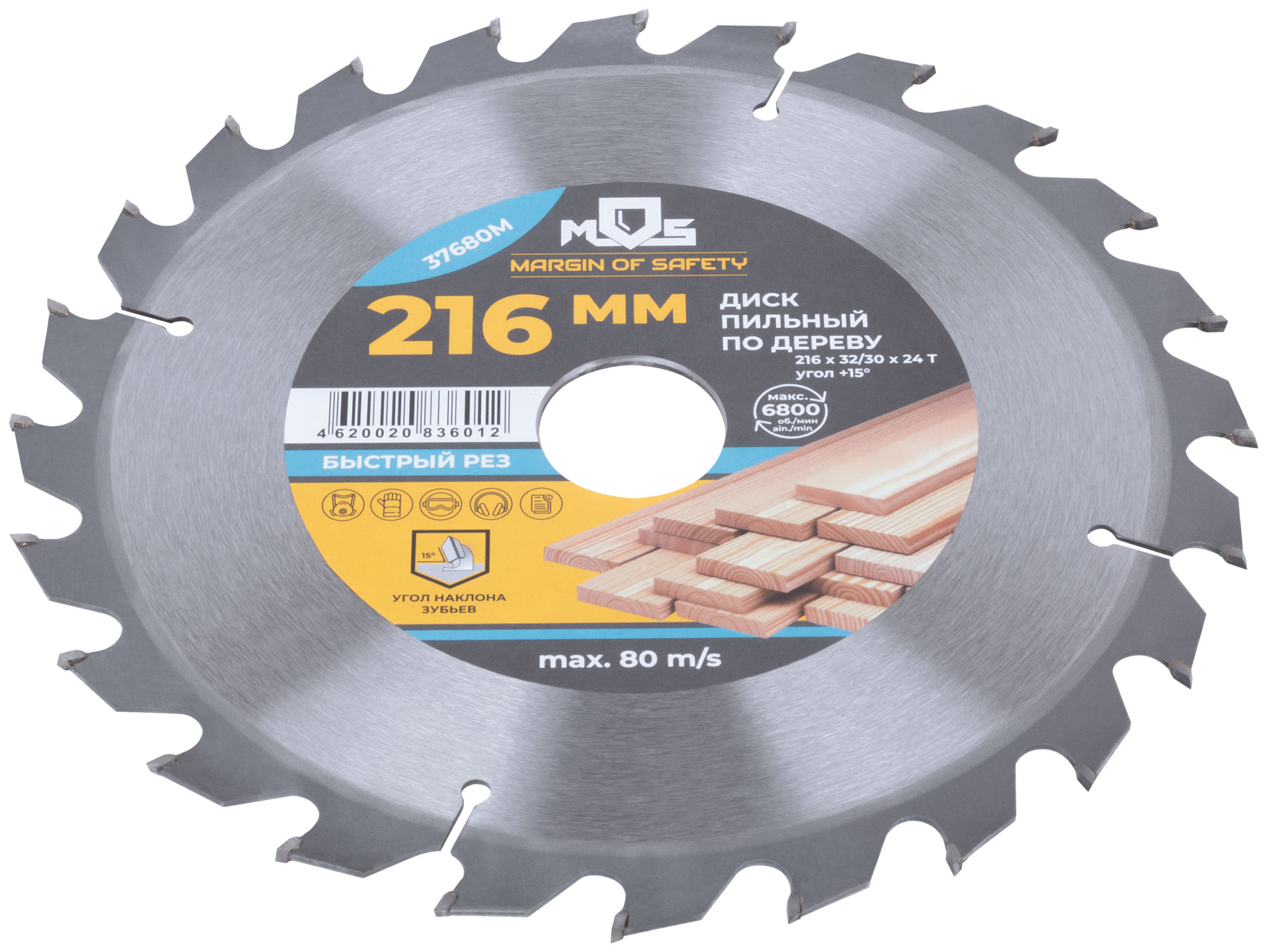 Диск MOS имеет угол атаки +15°, что способствует эффективному резу и снижению нагрузки на инструмент. В комплект входит кольцо 32/30 мм, позволяющее адаптировать диск к различным моделям пил.