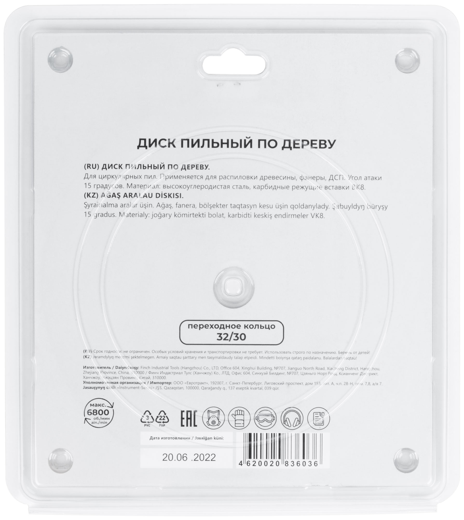 Диск имеет зубья из твердого сплава ВК8 (карбид вольфрама), что обеспечивает долговечность и высокую производительность. Корпус выполнен из легированной высокоуглеродистой стали, а угол атаки +15° способствует эффективному резанию.