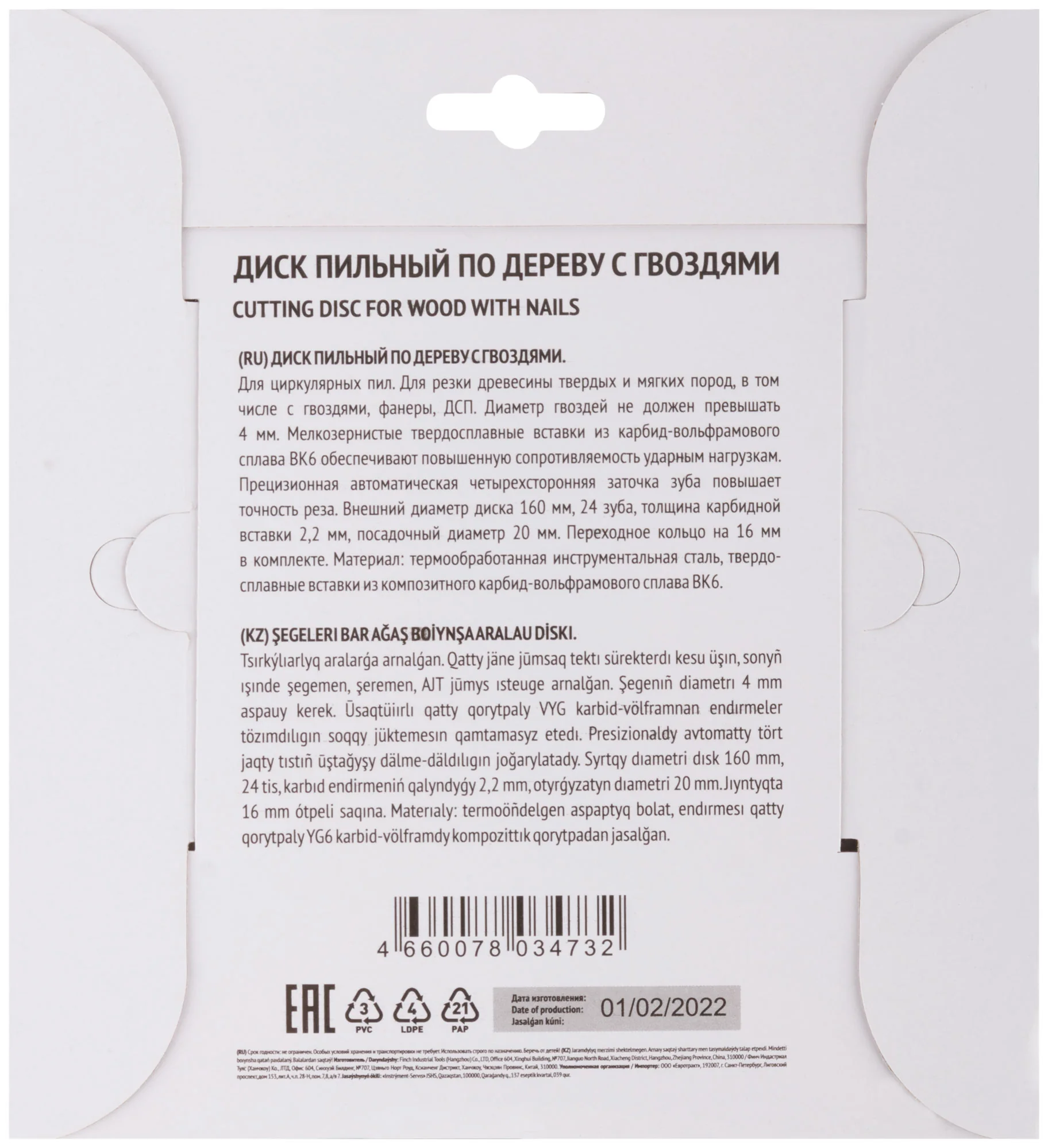 Диск изготовлен из высококачественной инструментальной стали. Вставки из карбид-вольфрамового сплава ВК6 обеспечивают устойчивость к ударным нагрузкам и долговечность. Диск имеет типоразмер 160 х 20/16 х 24T и поставляется в картонном конверте, что защищает его от повреждений во время транспортировки.