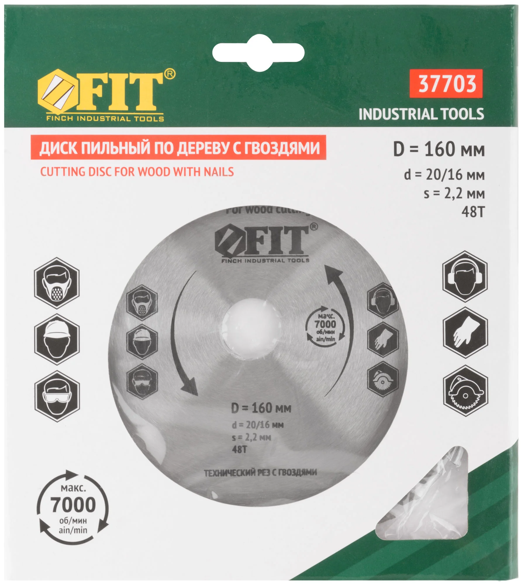 Выберите пильный диск FIT 37703, чтобы повысить эффективность своей работы с деревом и сократить время на обработку материалов с гвоздями.