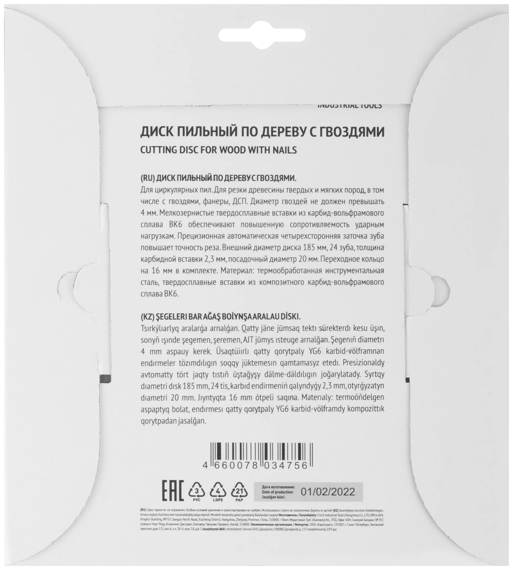 Изготовлен из инструментальной стали с карбидными режущими вставками ВК6, диск обеспечивает высокую устойчивость к ударным нагрузкам, что продлевает срок его службы и снижает износ даже при интенсивной эксплуатации.
