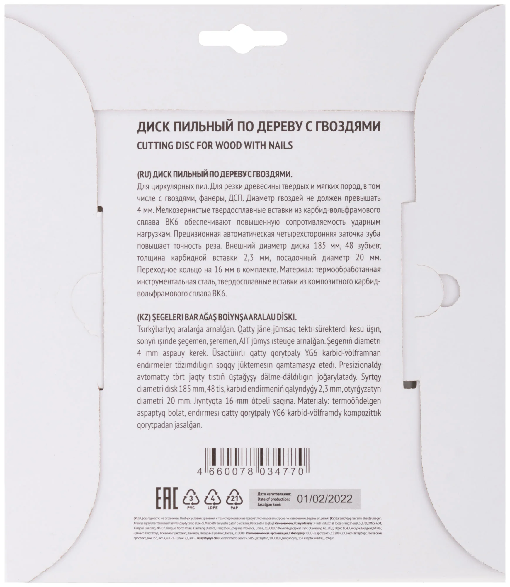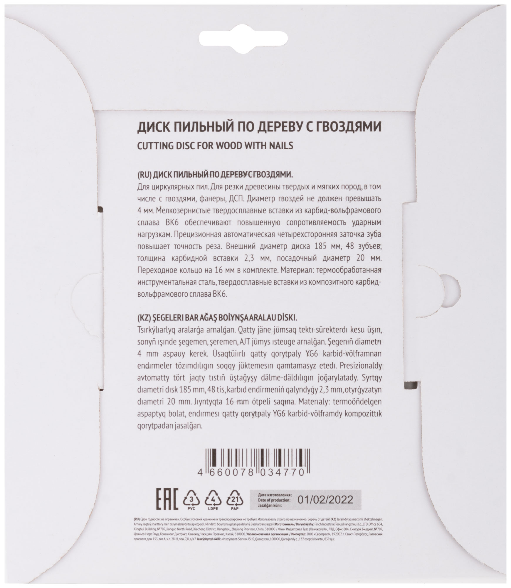 Диск изготовлен из инструментальной стали с карбидными режущими вставками из сплава ВК6, что обеспечивает его высокую износостойкость и устойчивость к ударным нагрузкам. Это идеальное решение для профессионалов, работающих с материалами, содержащими гвозди диаметром до 4 мм.