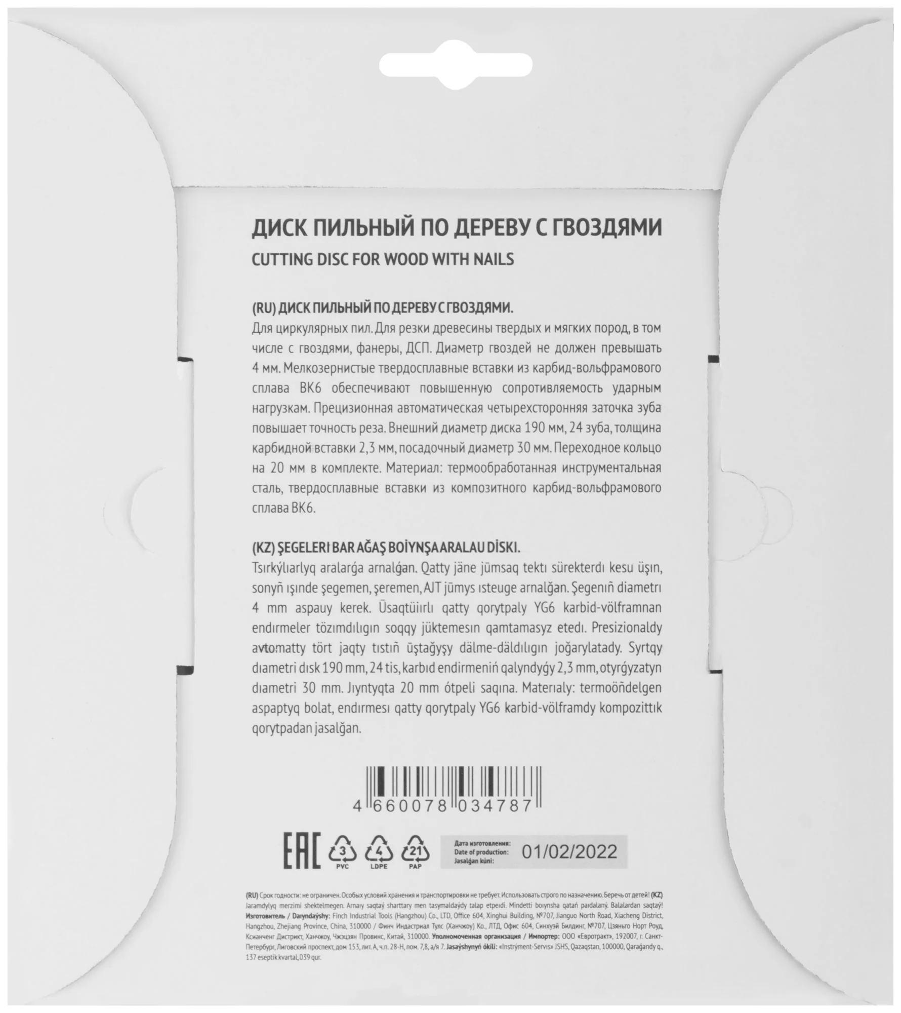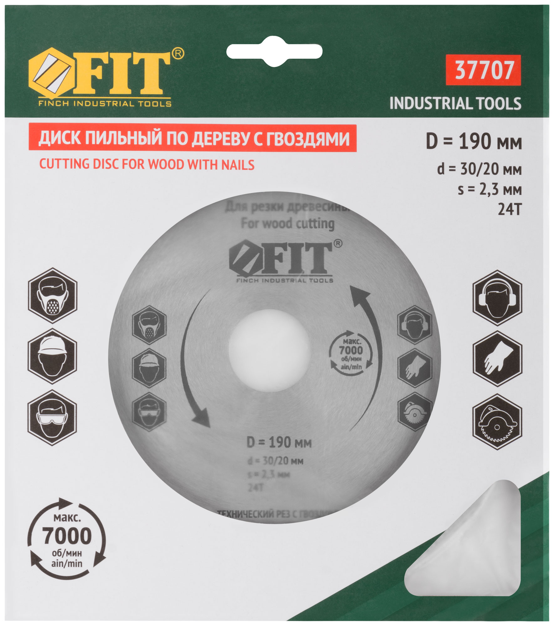 Выберите диск пильный FIT 190 х 30/20 х 24T 37707, чтобы облегчить резку древесины с гвоздями и повысить эффективность ваших работ.