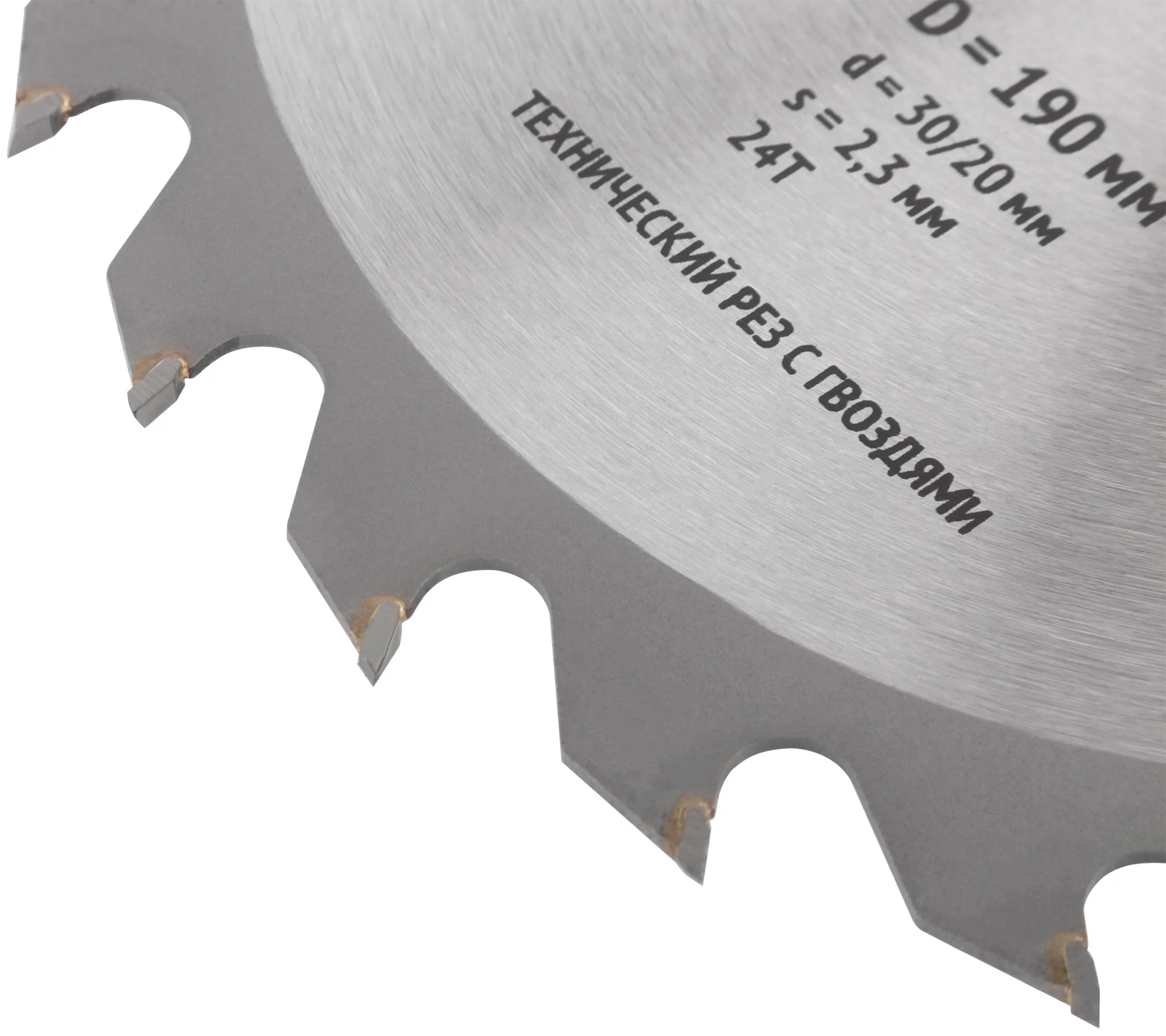 Диск пильный 190 х 30/20 х 24T для резки дерева с гвоздями