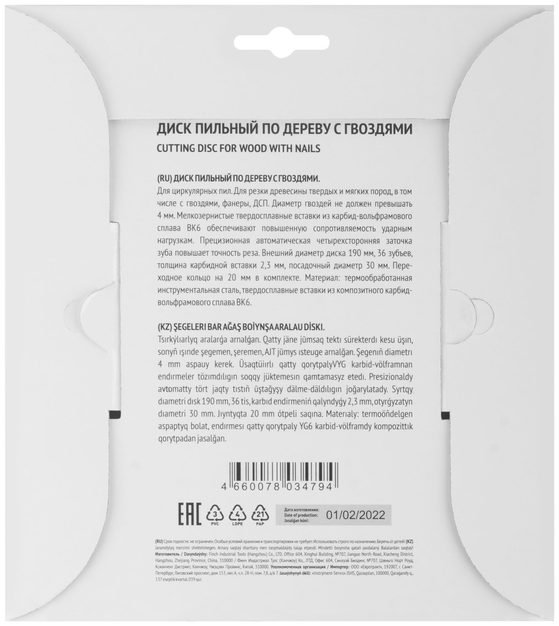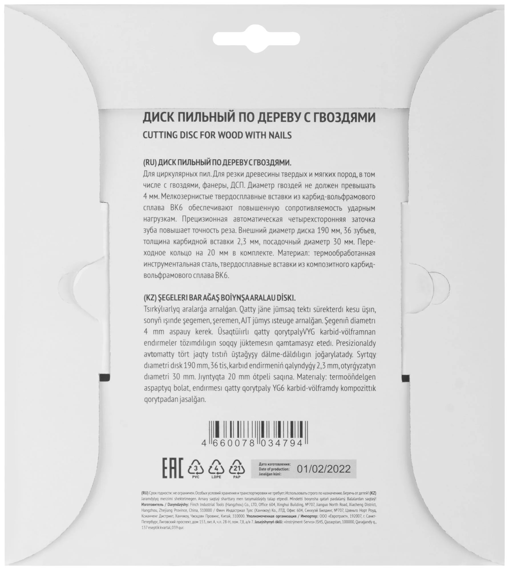 Среди преимуществ данного диска — возможность работы с твердыми и мягкими породами дерева, фанерой и ДСП. Диаметр гвоздей, которые может преодолеть диск, не превышает 4 мм, что делает его универсальным инструментом для большинства задач.