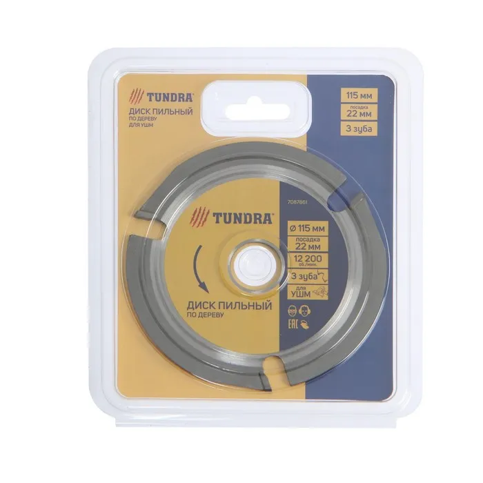 Диск пильный для УШМ ТУНДРА, для быстрой и плавной обработки дерева, 115×22 мм, 3 зуба — Характеристики