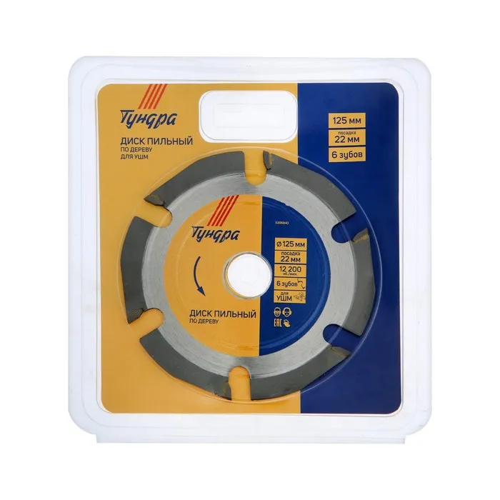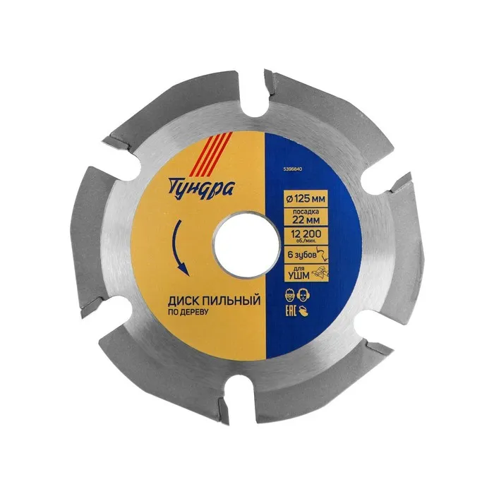 Диск пильный для УШМ ТУНДРА, для быстрой и плавной обработки дерева, 125×22 мм, 6 зубов — Характеристики
