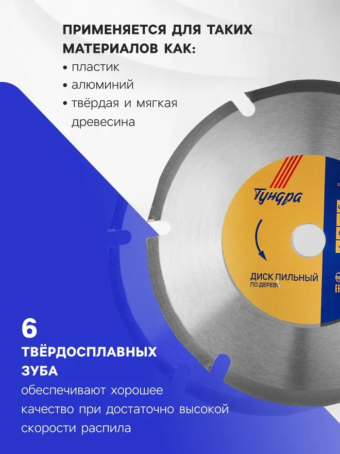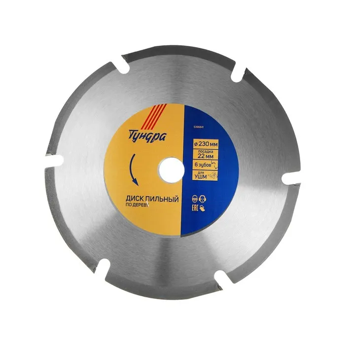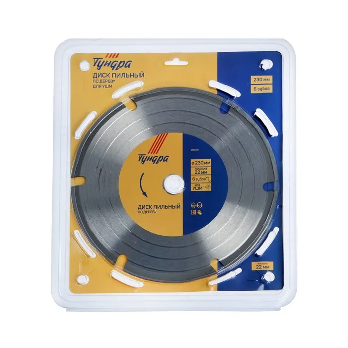 Диск пильный для УШМ ТУНДРА, для быстрой и плавной обработки дерева, 230×22 мм, 6 зубов — Характеристики