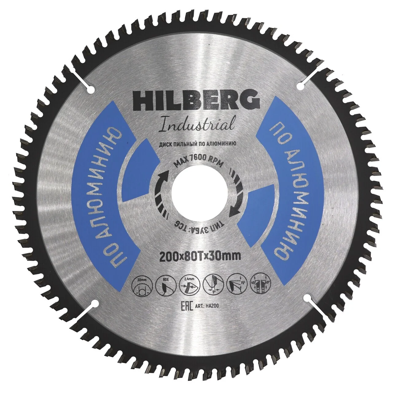 Пильный диск Hilberg 200x30 мм, 80 зубьев для резки алюминия