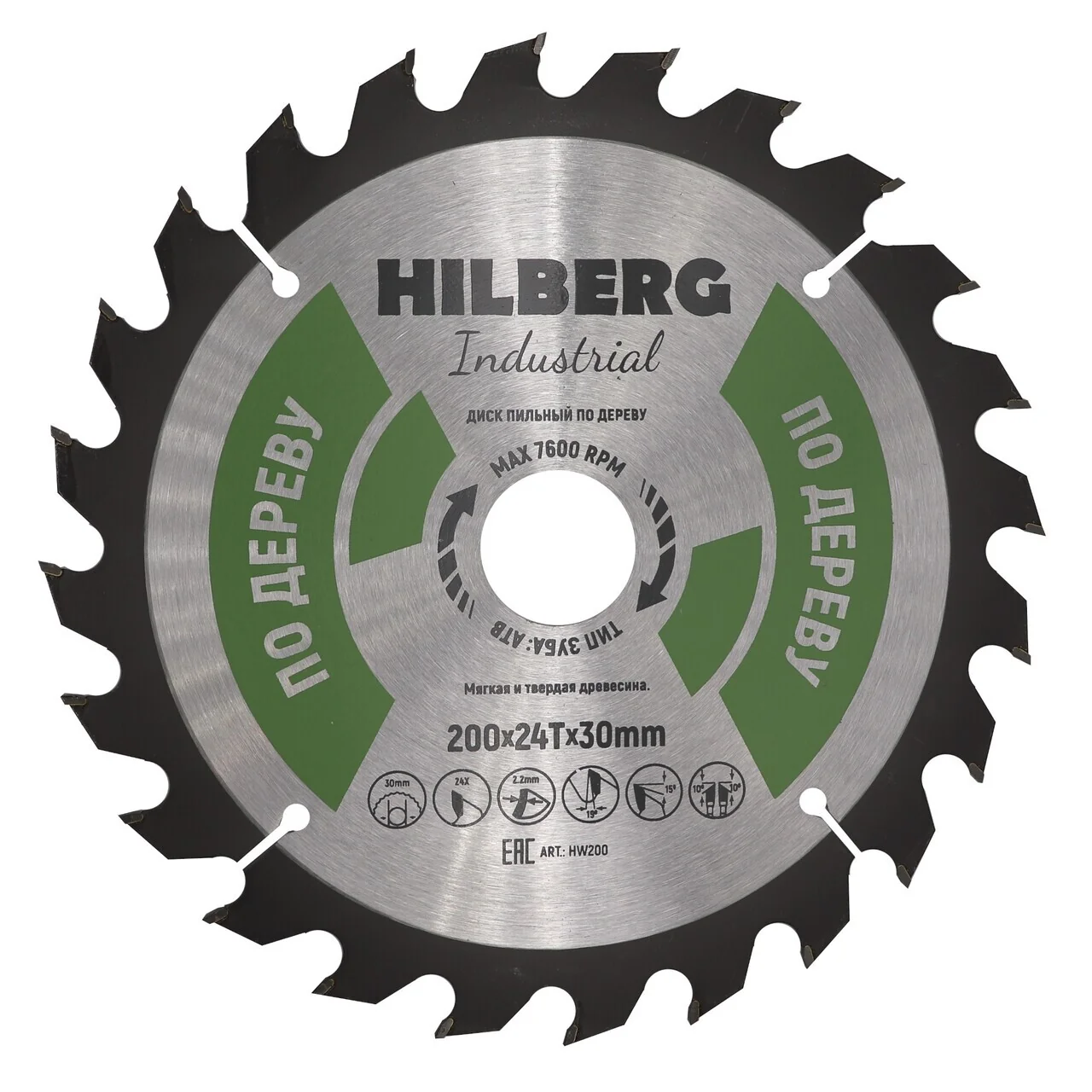 Диск пильный Hilberg Industrial 200*30*24Т для резки дерева
