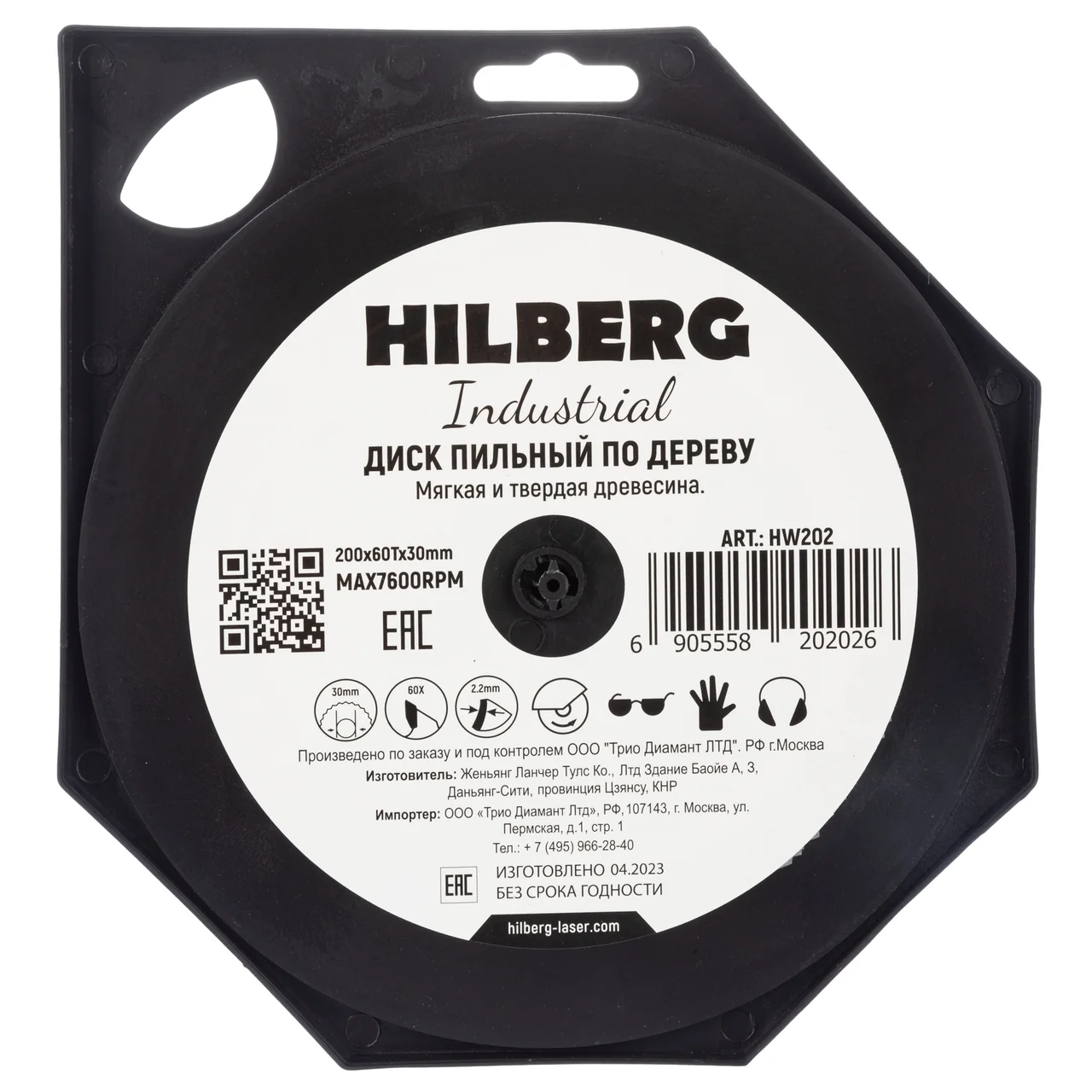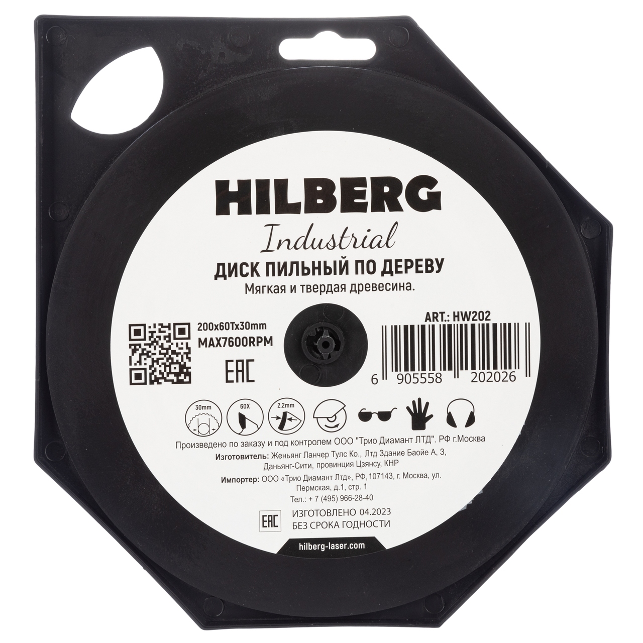 Диск пильный Hilberg 200*30*60T для чистого реза древесины