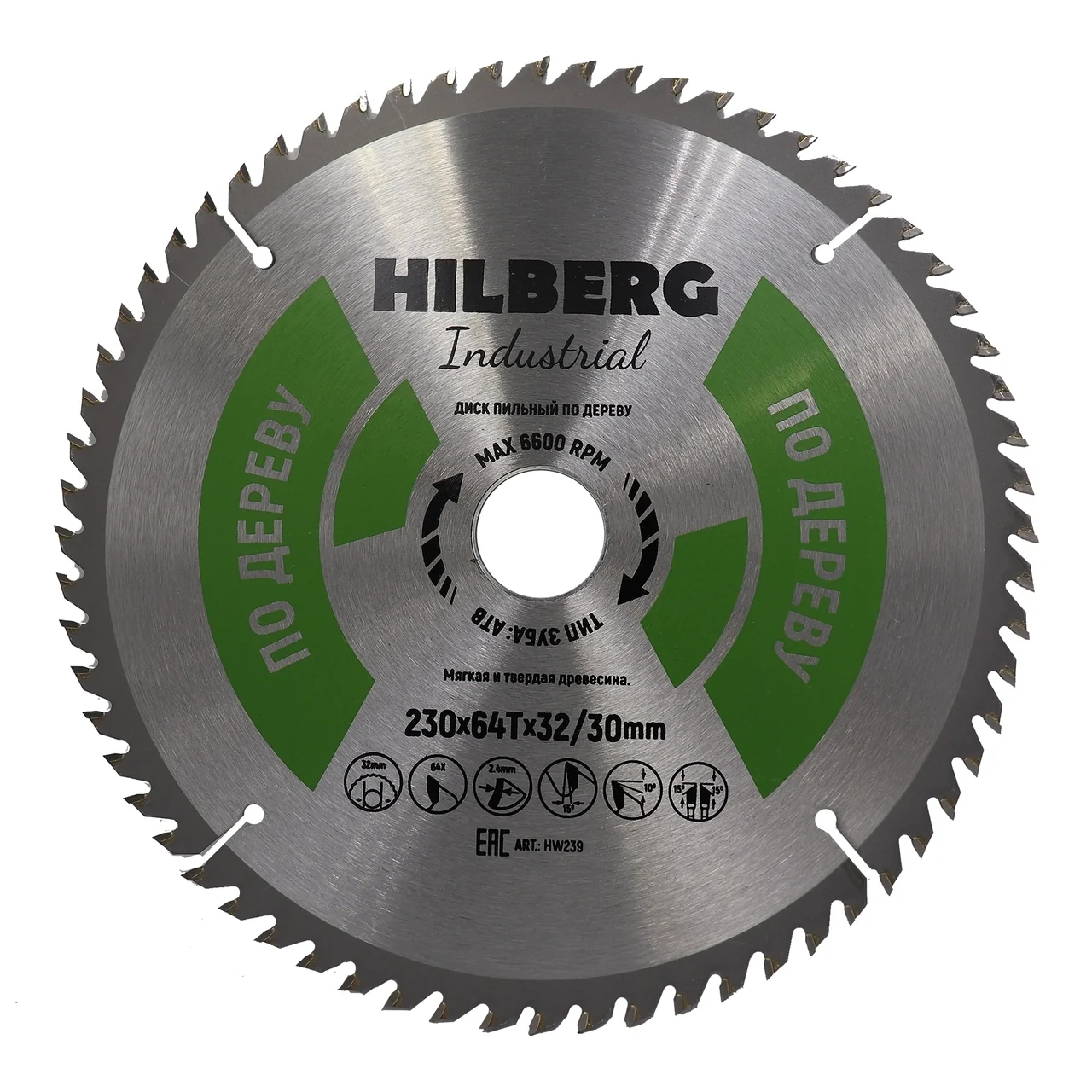 Диск изготовлен из качественных материалов и имеет посадочный диаметр 32 мм. Он поддерживает максимальные обороты до 6 600 RPM, что обеспечивает стабильность и безопасность в процессе работы. Геометрия зуба ATB и угол заточки 15° способствуют эффективному резанию без сколов.