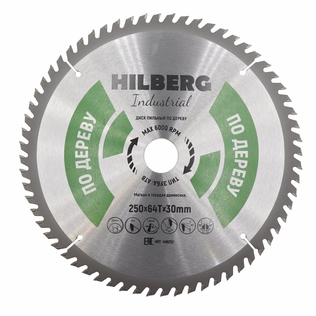 Диск пильный Hilberg Industrial 250*30*64Т для точного реза дерева