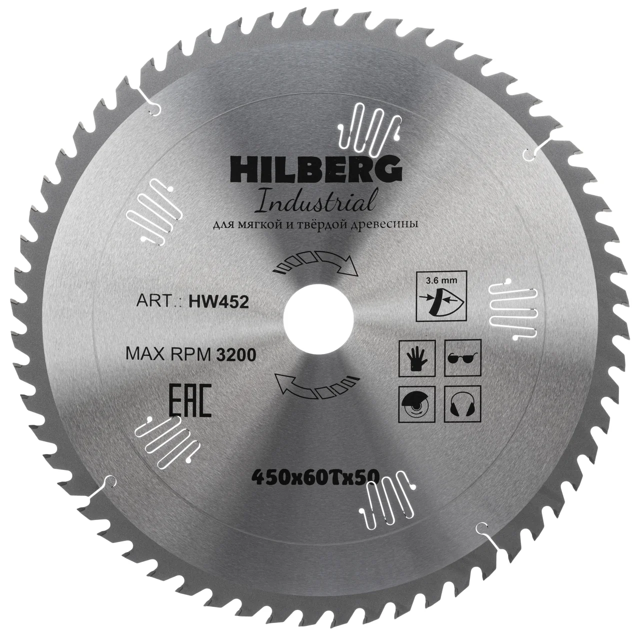 Пильный диск Hilberg Industrial отличается специальной конструкцией для снижения уровня шума, что делает его идеальным выбором для использования в мастерских и на стройплощадках.