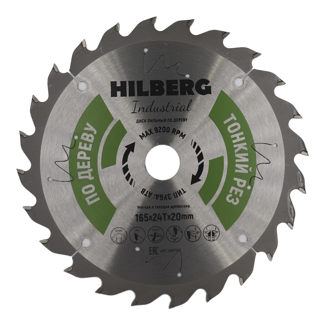 Диск изготовлен из высококачественных материалов и имеет 24 зуба с углом заточки 18°, что обеспечивает чистый и аккуратный рез. Толщина пропила составляет всего 1.6 мм, что минимизирует отходы материала.