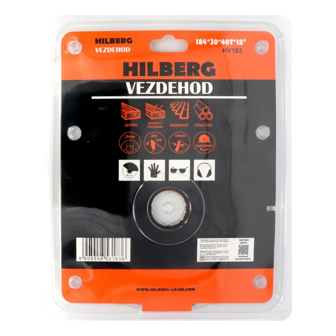Пильный диск Hilberg Vezdehod 184 мм с 40 зубьями для быстрого реза