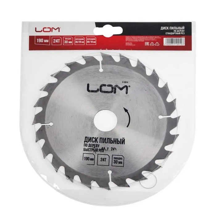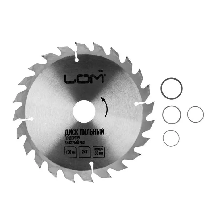 Диск ЛОМ используется для продольного и поперечного распила древесины, фанеры, ДСП, ламината и пластика. Оснастка изготовлена из инструментальной стали, что обеспечивает её устойчивость к коррозии и окислению.
