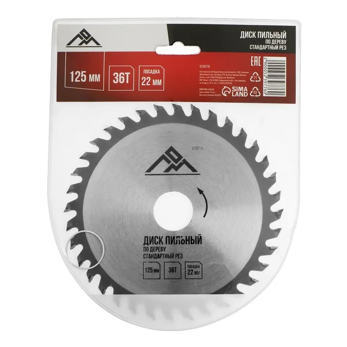 Диск пильный по дереву ЛОМ, стандартный рез, 125×22 мм, 36 зубьев — Характеристики