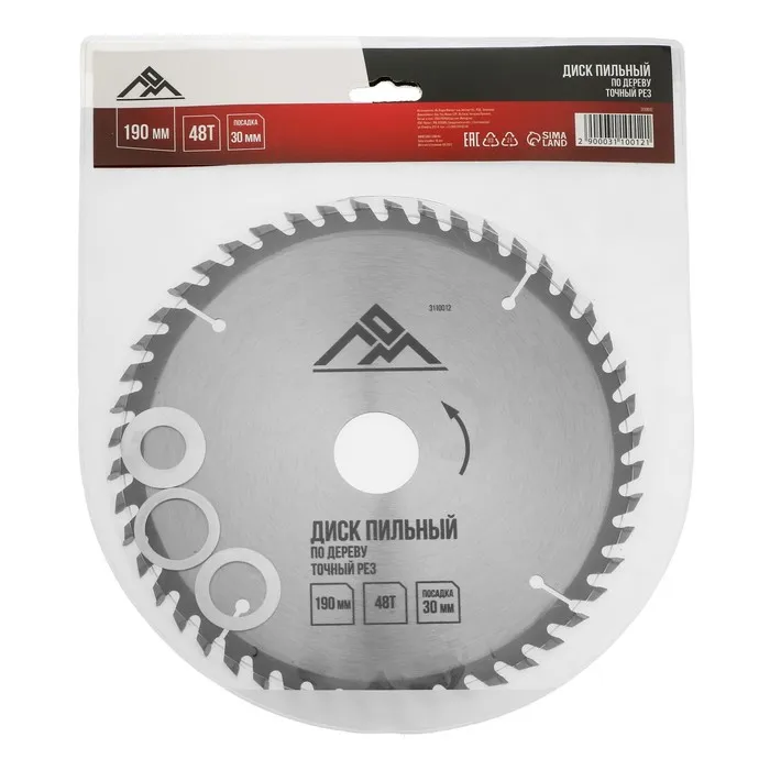 Диск пильный по дереву ЛОМ, точный рез, 190×30 мм (кольца на 20, 16), 48 зубьев — Характеристики