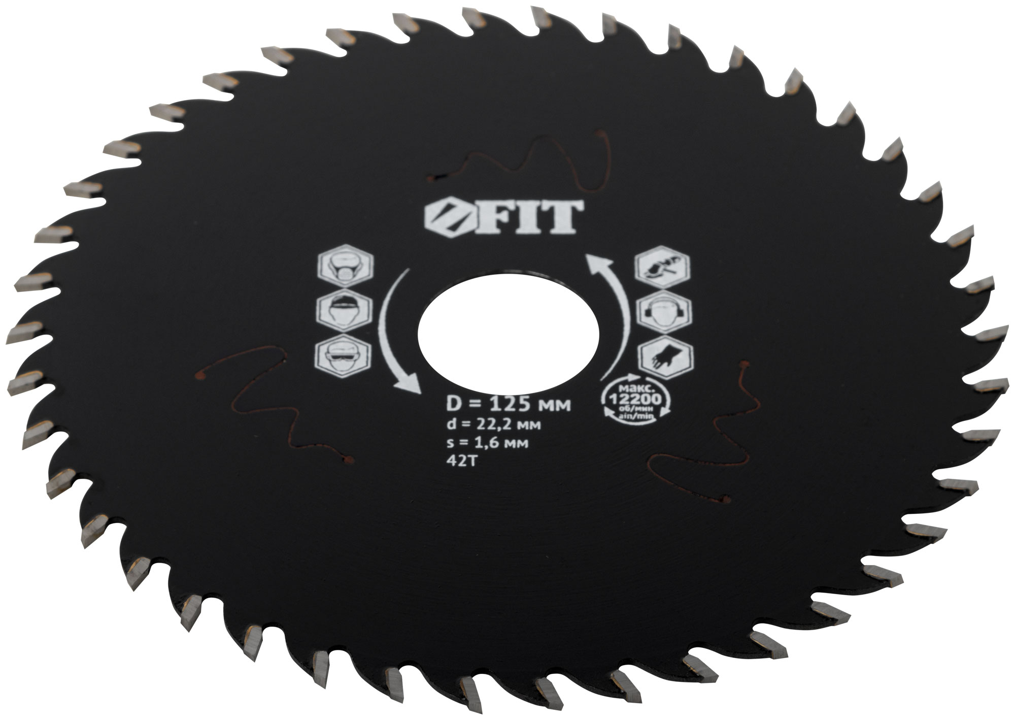 Диск пильный по дереву, посадочный диаметр 22,2 мм, 42 зуба с карбидными вставками, 125 мм