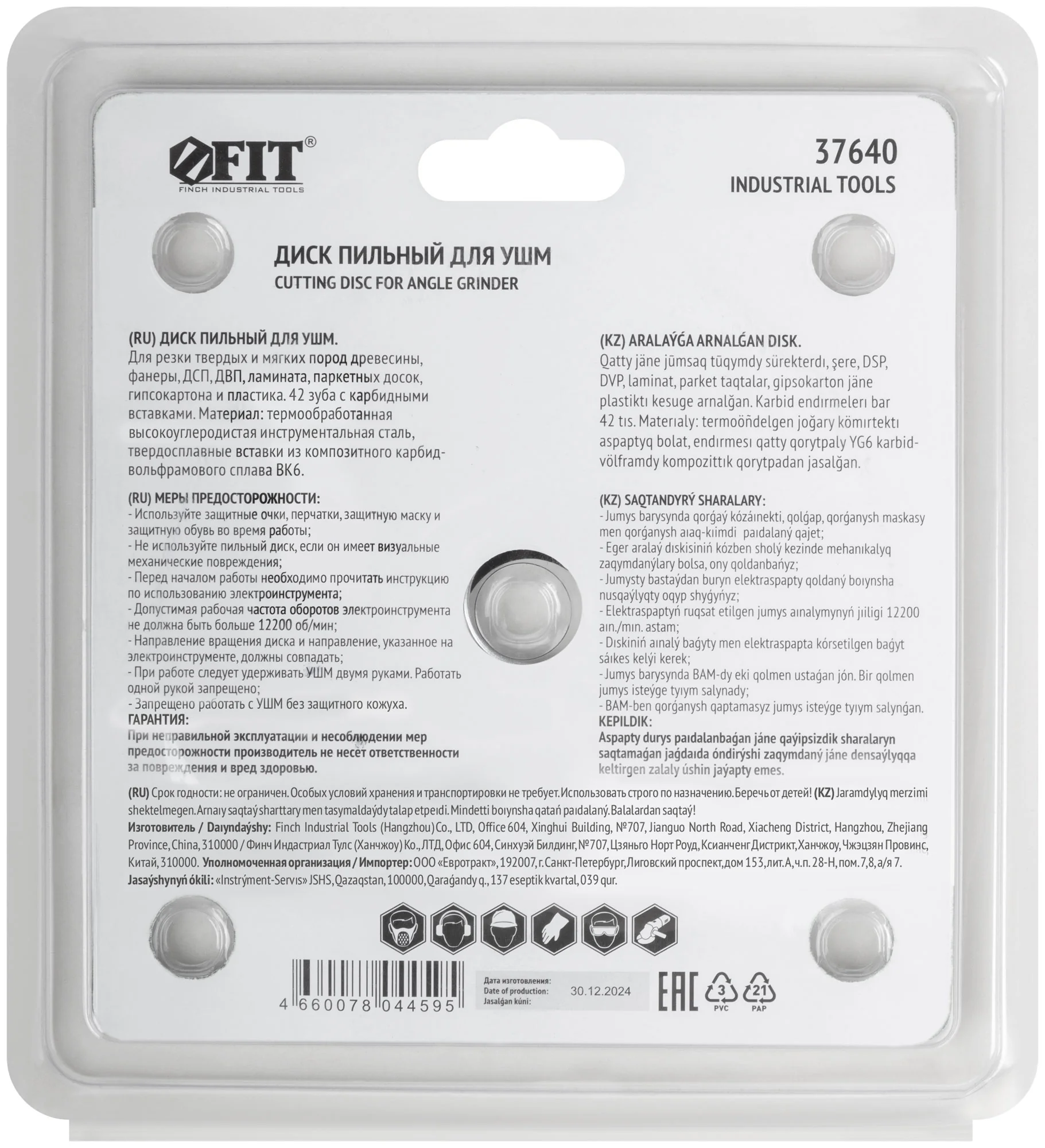 Пильный диск FIT 37640 отличается высоким качеством материалов и сборки. Карбидные вставки на зубьях увеличивают срок службы и позволяют справляться с различными материалами без потери остроты. Это делает его незаменимым инструментом для профессионалов.