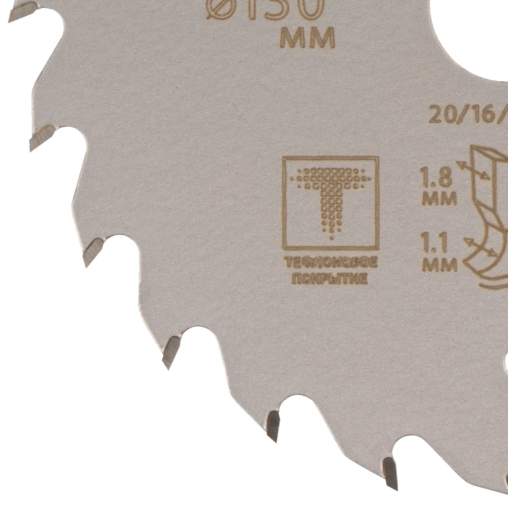 Диск изготовлен из инструментальной стали и оснащен карбидными зубьями, которые гарантируют долговечность и высокую производительность. Особое тефлоновое покрытие и компенсационные пазы способствуют быстрому теплоотводу, предотвращая деформацию и продлевая срок службы изделия.