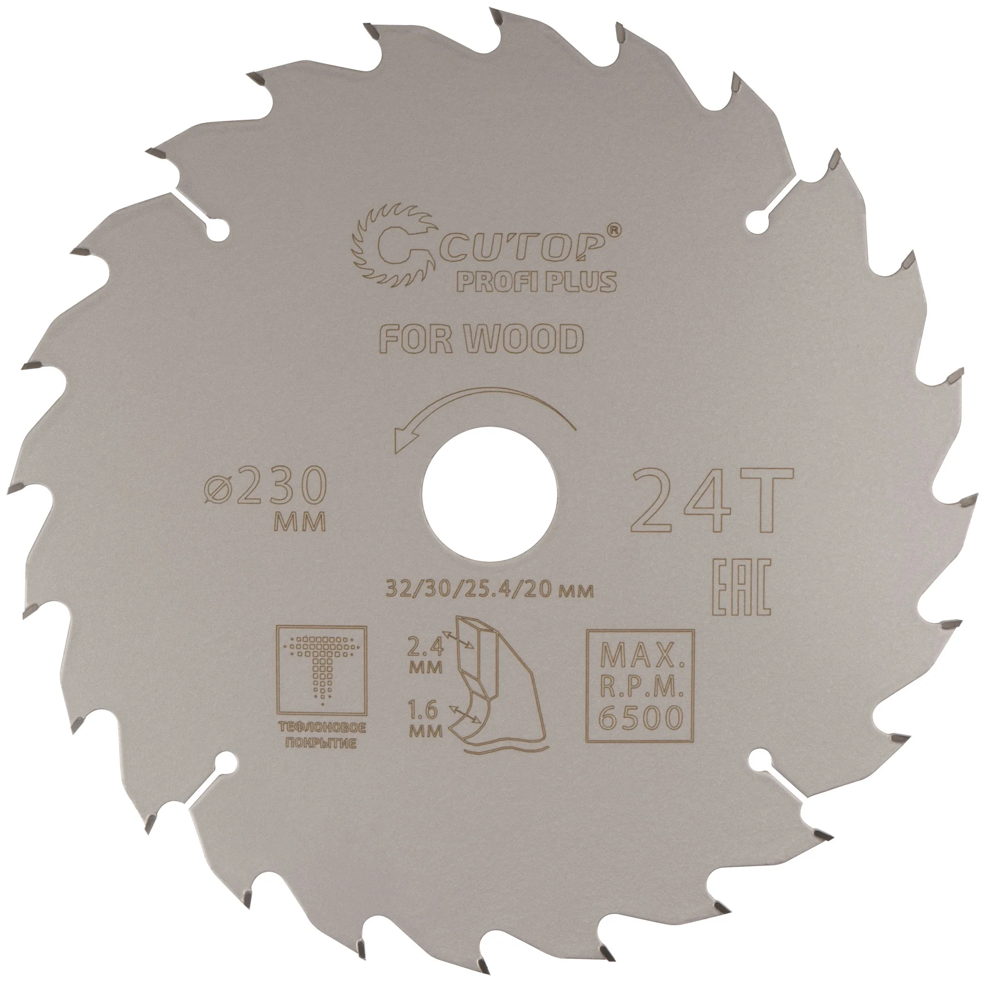 Диск пильный 230 мм с тефлоновым покрытием и 24 зубьями для дерева
