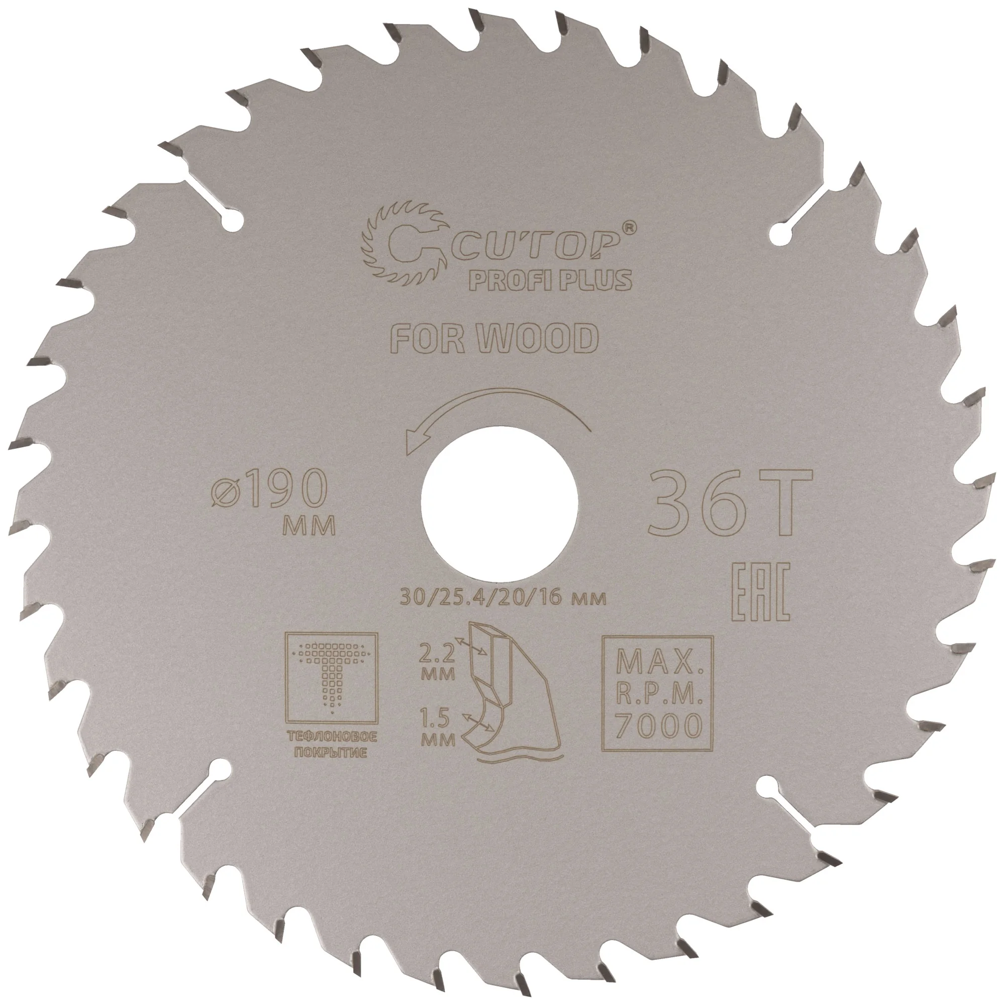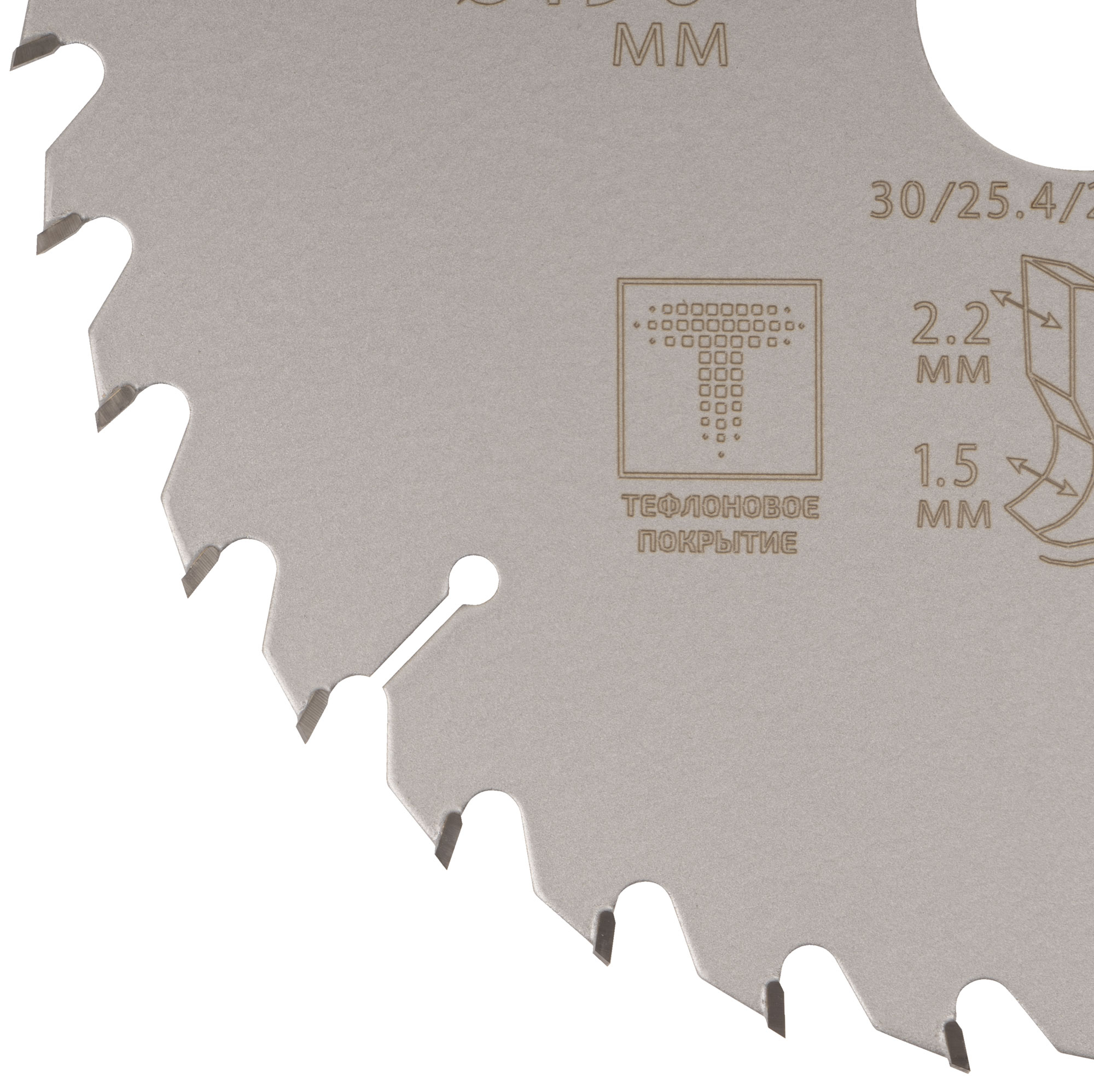 Диск изготовлен из инструментальной стали и оснащен карбидными зубьями, что обеспечивает высокую износостойкость и долговечность. Тефлоновое покрытие и компенсационные пазы способствуют эффективному теплоотводу, предотвращая деформацию и обеспечивая более длительный срок службы.