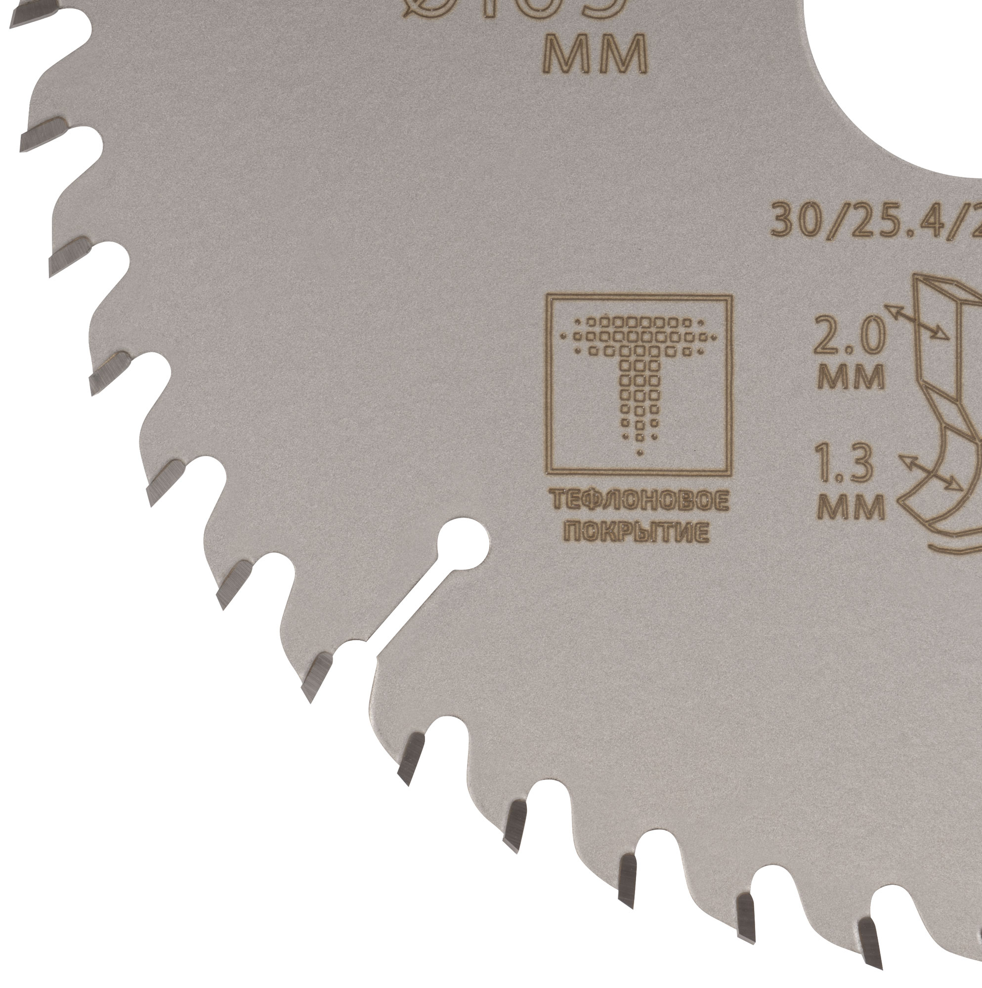Благодаря тефлоновому покрытию и компенсационным пазам, диск эффективно отводит тепло, что предотвращает его деформацию и увеличивает срок службы. Изготовленный из инструментальной стали с карбидными зубьями, диск обеспечивает ровный и чистый рез. Поставляется в удобной блистерной упаковке с переходными кольцами для различных посадочных диаметров.