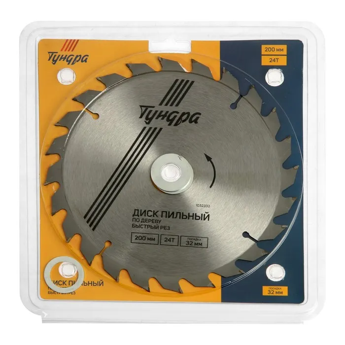 Диск пильный по дереву ТУНДРА, быстрый рез, 200×32 мм (кольца на 22.20,16), 24 зуба — Характеристики