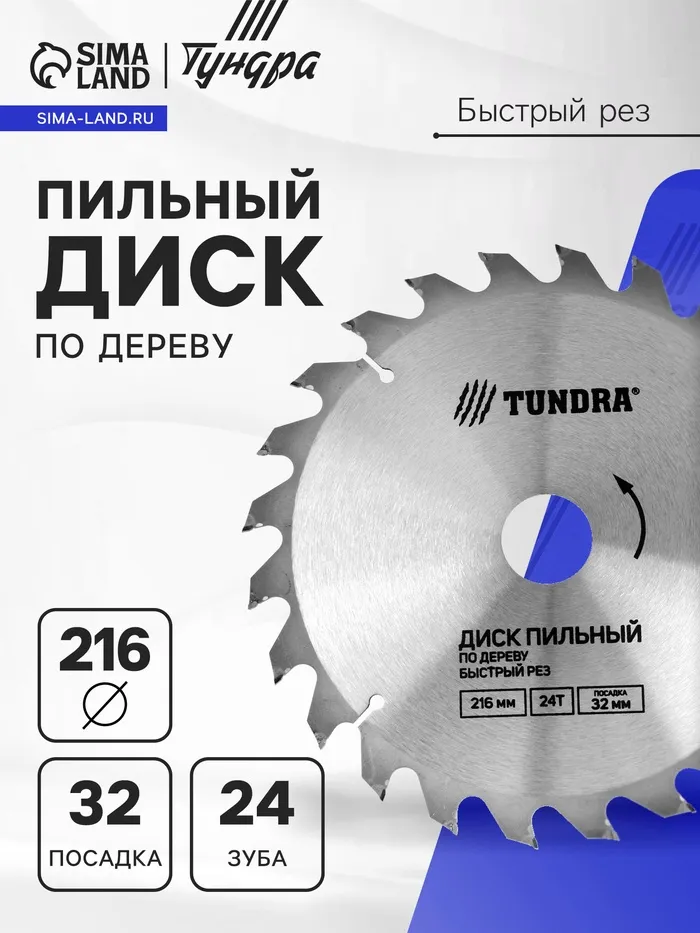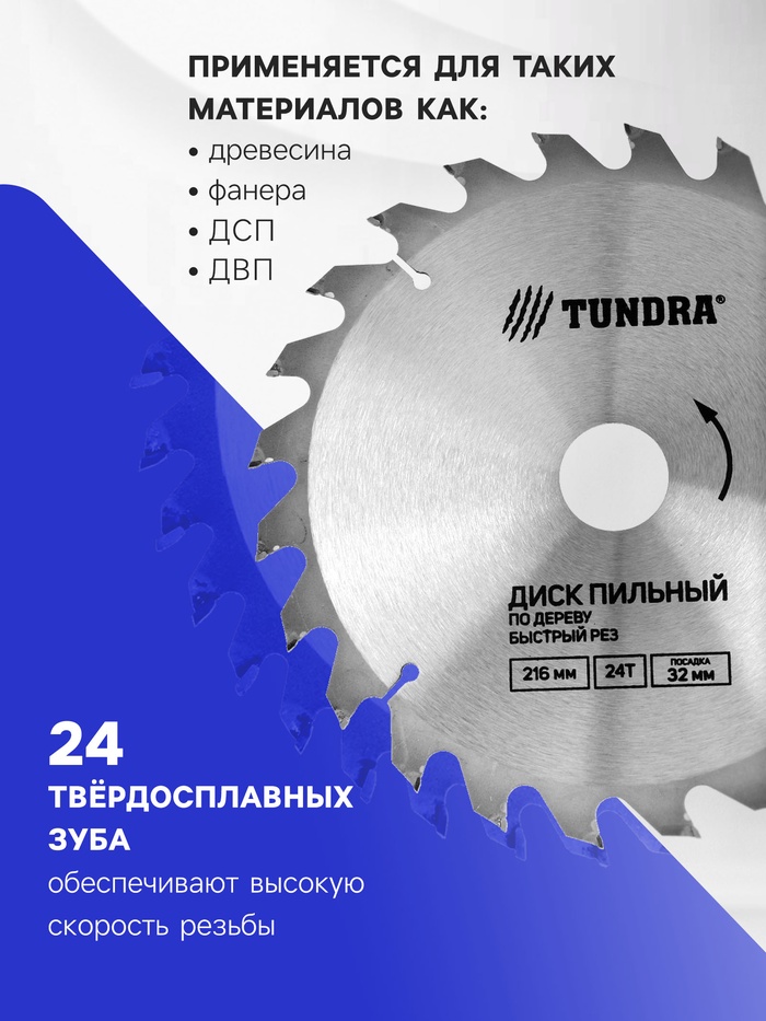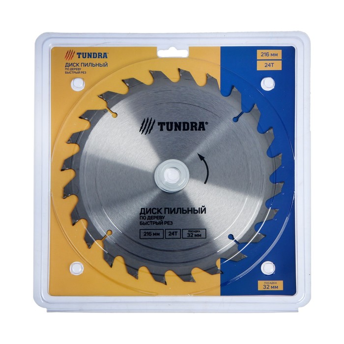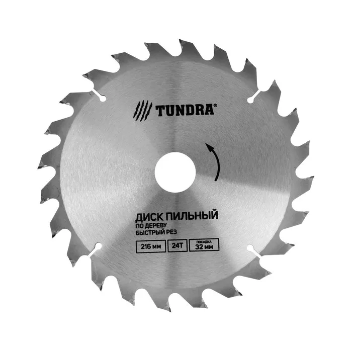 Диск пильный по дереву ТУНДРА, быстрый рез, 216×32 мм (кольца на 22.20,16), 24 зуба — Характеристики