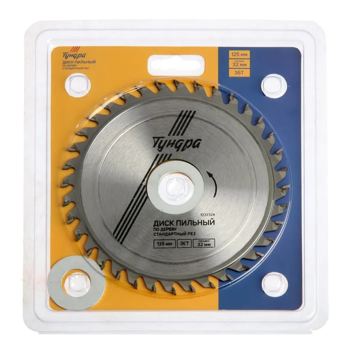 Диск пильный по дереву ТУНДРА, стандартный рез, 125×32 мм (кольца на 22.20,16), 36 зубьев — Характеристики