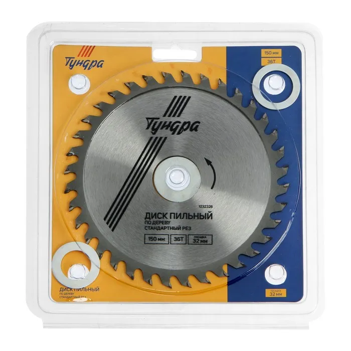 Диск пильный по дереву ТУНДРА, стандартный рез, 150×32 мм (кольца на 22.20,16), 36 зубьев — Характеристики