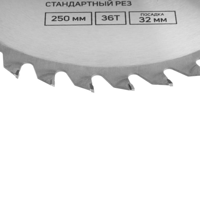 Диск пильный по дереву ТУНДРА, стандартный рез, 250×32 мм (кольца на 22.20.16), 36 зубьев — Характеристики