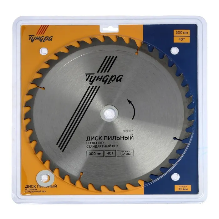 Диск пильный по дереву ТУНДРА, стандартный рез, 300×32 мм (кольца на 22.20,16), 40 зубьев — Характеристики