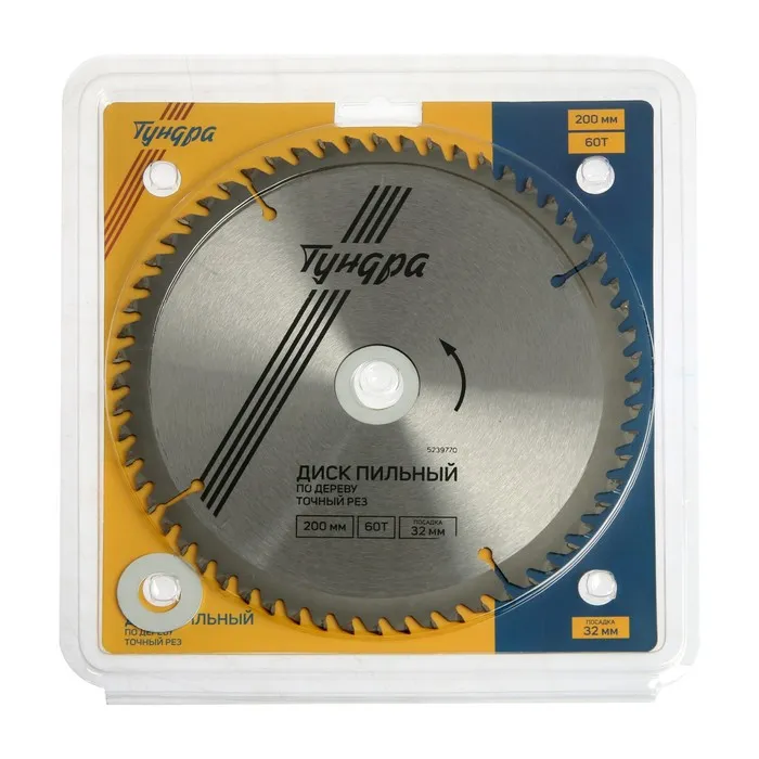Диск пильный по дереву ТУНДРА, точный рез, 200×32 мм (кольца на 22.20,16), 60 зубьев — Характеристики