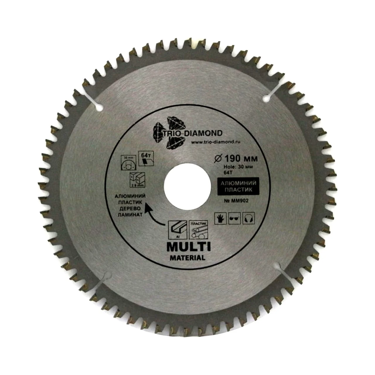 Этот диск пильный TRIO-DIAMOND MM902 идеально подходит для работы с различными материалами, такими как древесина, пластик, ламинат и алюминий. Его 64 зуба обеспечивают чистый рез, что особенно важно при отделочных работах или изготовлении мебели.