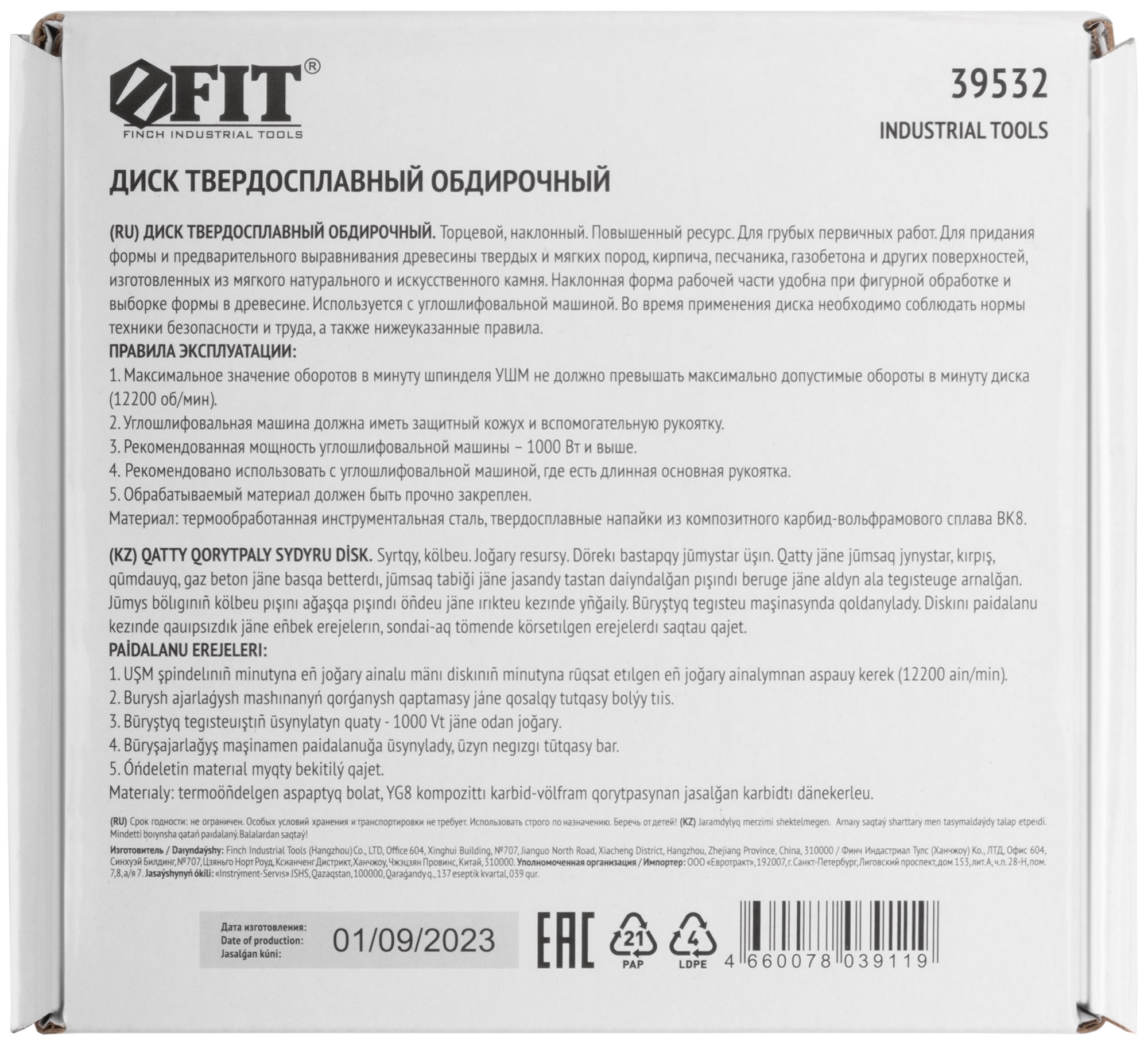 Выберите диск FIT 39532 для качественной и долговечной обработки различных материалов.