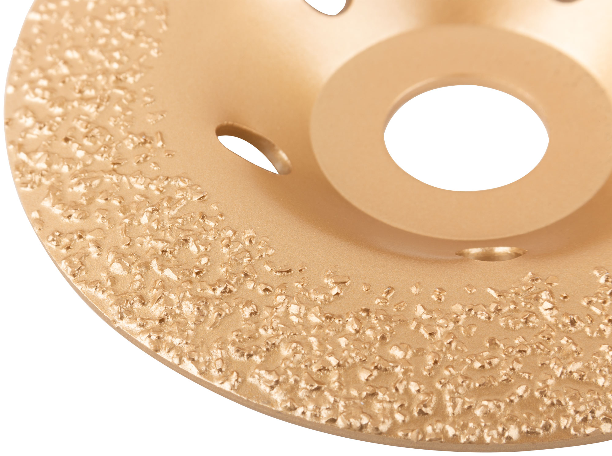 Конструкция диска изготовлена из инструментальной стали с напайками из карбида вольфрама, что обеспечивает долговечность и оптимальную производительность при шлифовке. Посадочный диаметр 22,2 мм подходит для большинства стандартных угловых шлифовальных машин.