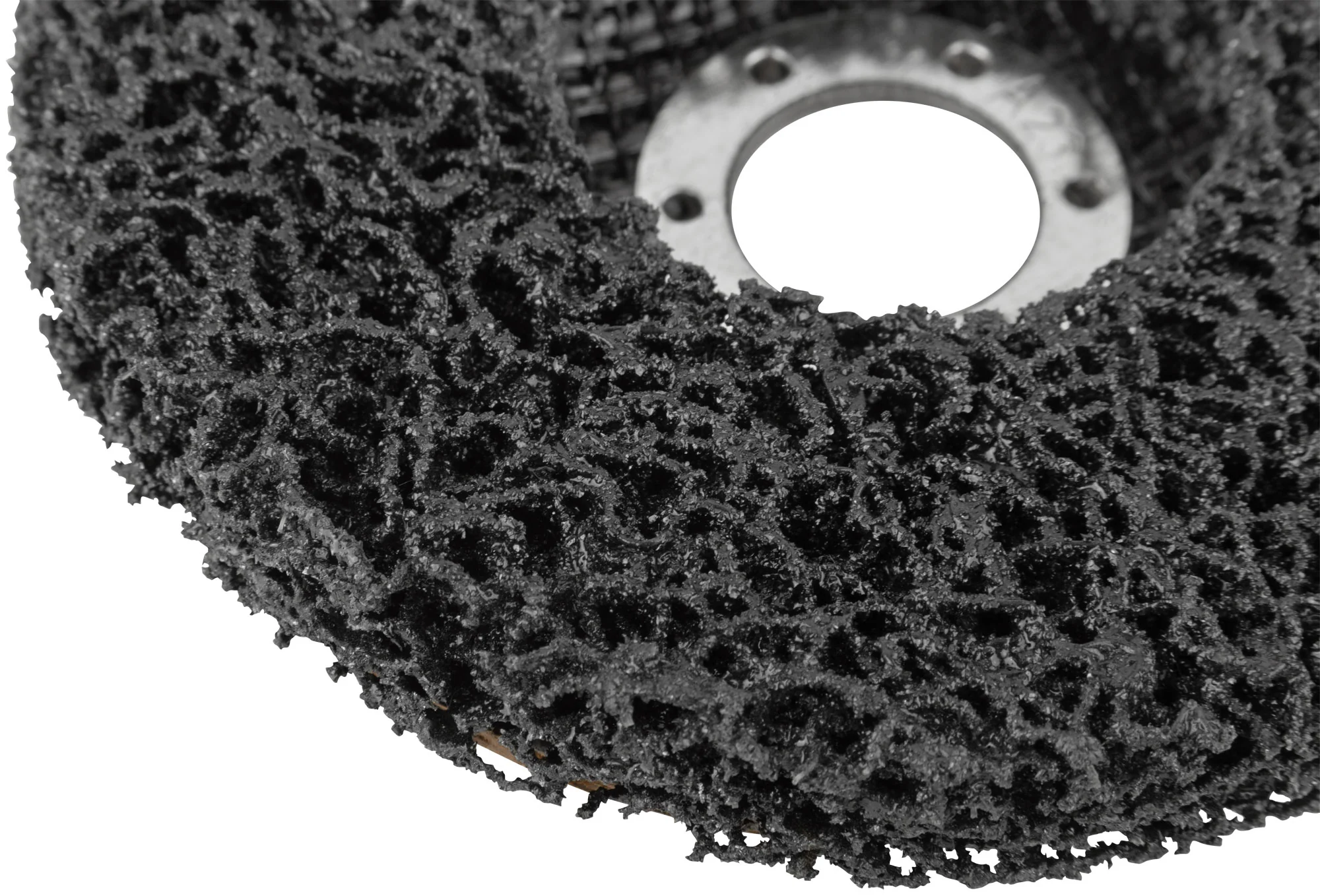 Изготовленный из инструментальной стали с добавлением фибергласа и нейлоновых волокон, диск обладает высокой прочностью и долговечностью. Абразивный слой из карбида кремния обеспечивает эффективное удаление загрязнений с минимальным повреждением обрабатываемой поверхности.