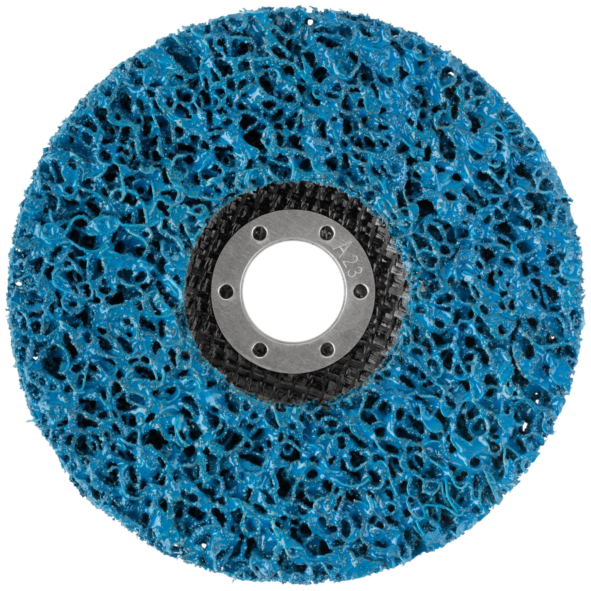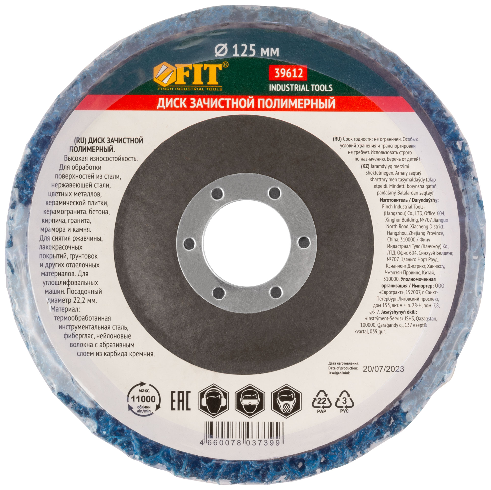 Диск зачистной полимерный FIT, синий, диаметром 125 мм и посадочным диаметром 22,2 мм — идеальное решение для мастеров, выполняющих зачистку и обработку различных поверхностей. Незаменим в ситуациях, когда требуется быстро и эффективно устранить лакокрасочные покрытия или загрязнения с минимальным повреждением основы.